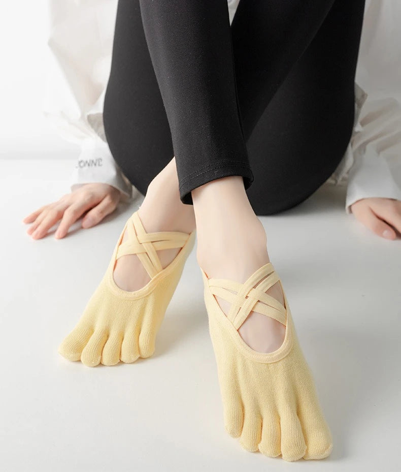 1/4 Pairs New Women Anti Slip Pilates Socks Five Toe Silicone Non-Slip Yoga Sock Bandage Ladies Fitness Sports Cotton Sock