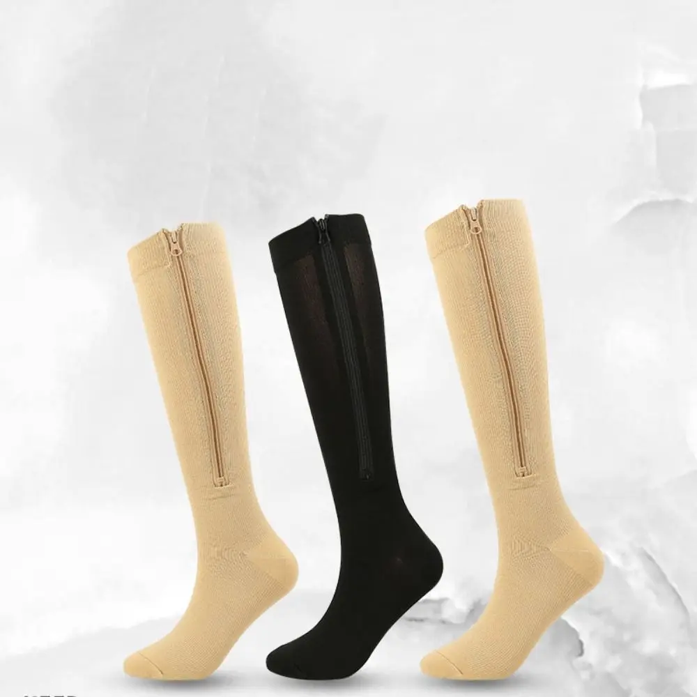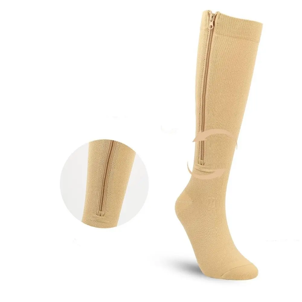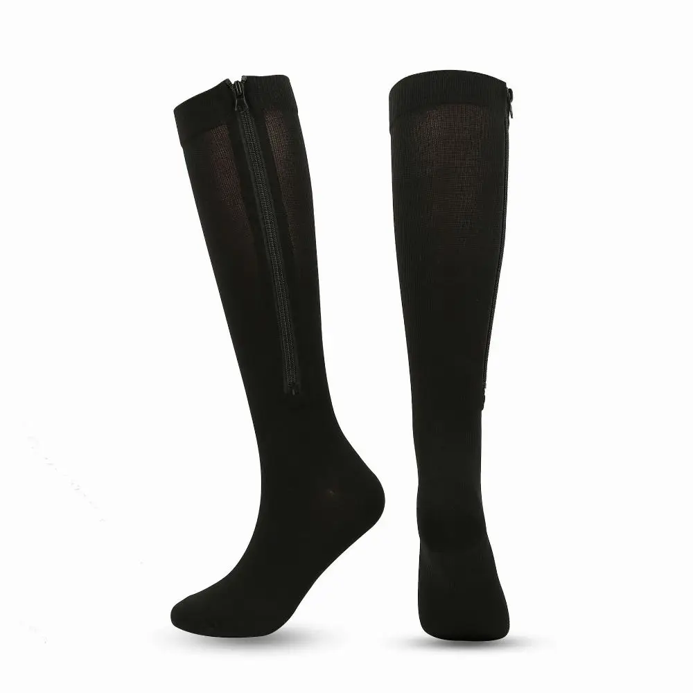 1 Pair Zipper Compression Socks Women Men High Elasticity Nylon Closed Toe Pressure Stocking For Edema Varicose Veins