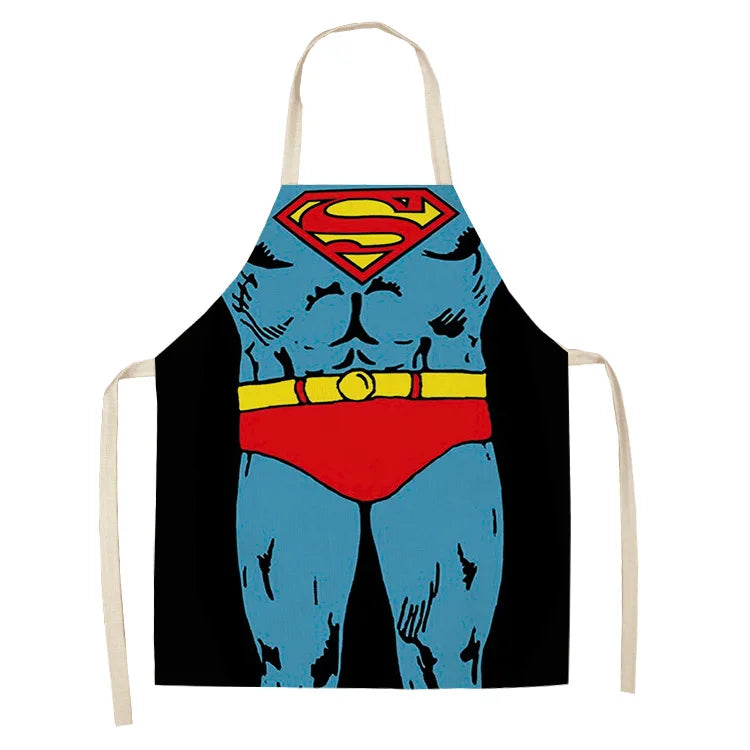 1 Pcs Sexy Female Superhero Printed Cotton Linen Apron Captain Waistline Adult kids Sleeveless Halter Apron Capitaine Amerique