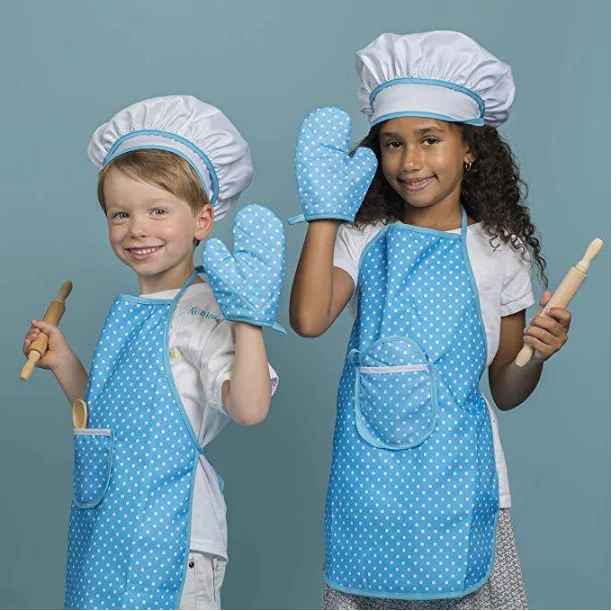11 pcs/set Apron for Little Girls Kids Cooking Baking Set Chef Hat Mitt & Utensil for Toddler Dress Up Chef Costume Role Play