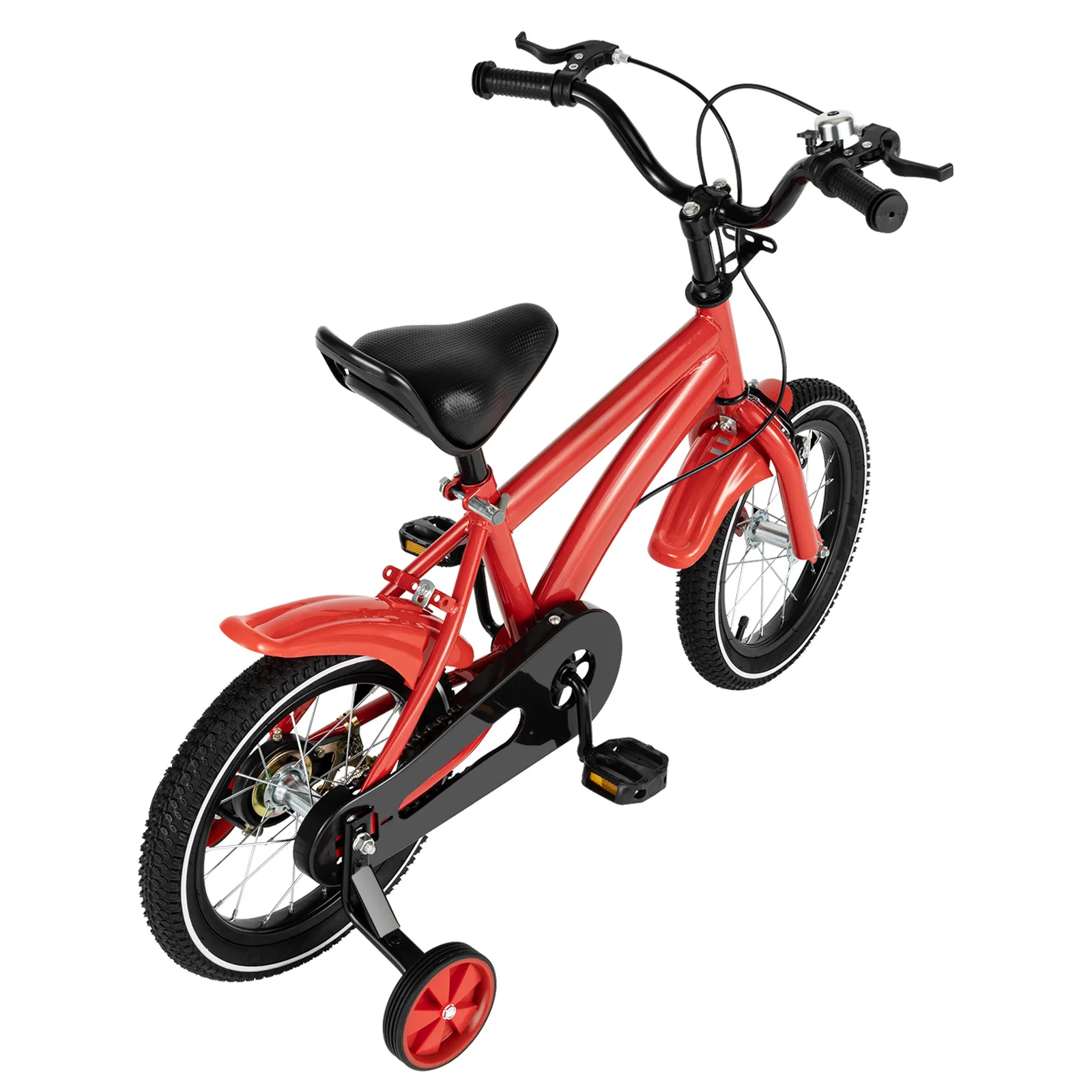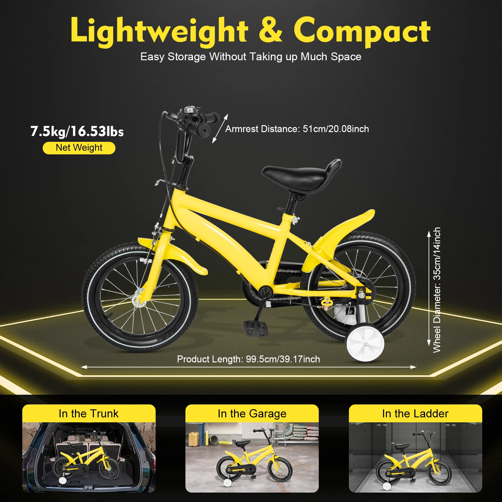14 Inch Children Bicycle with Training Wheels for 2-4 Years Old Boys Girls, Adjustable Seat & Handlebars, Lightweight Carbon Steel Frame, Dual Brake System, Anti-Slip Tires, Shock-Absorbing Wheels, Easy Assembly, Max Load 110lbs, for Mud/Sand/Mountain Roads (Yellow/Blue/Red/White)
