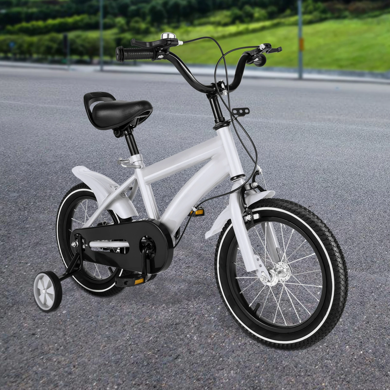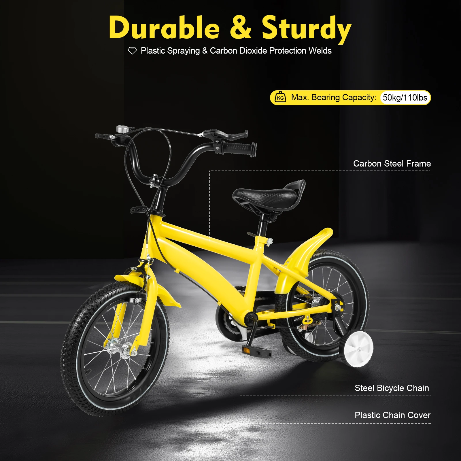 14 Inch Kids Bike Adjustable Seat Dual Brakes Children's Bicycle Load 50kg w/Training Wheels for Ages 2-4, Yellow/Blue/Red/White