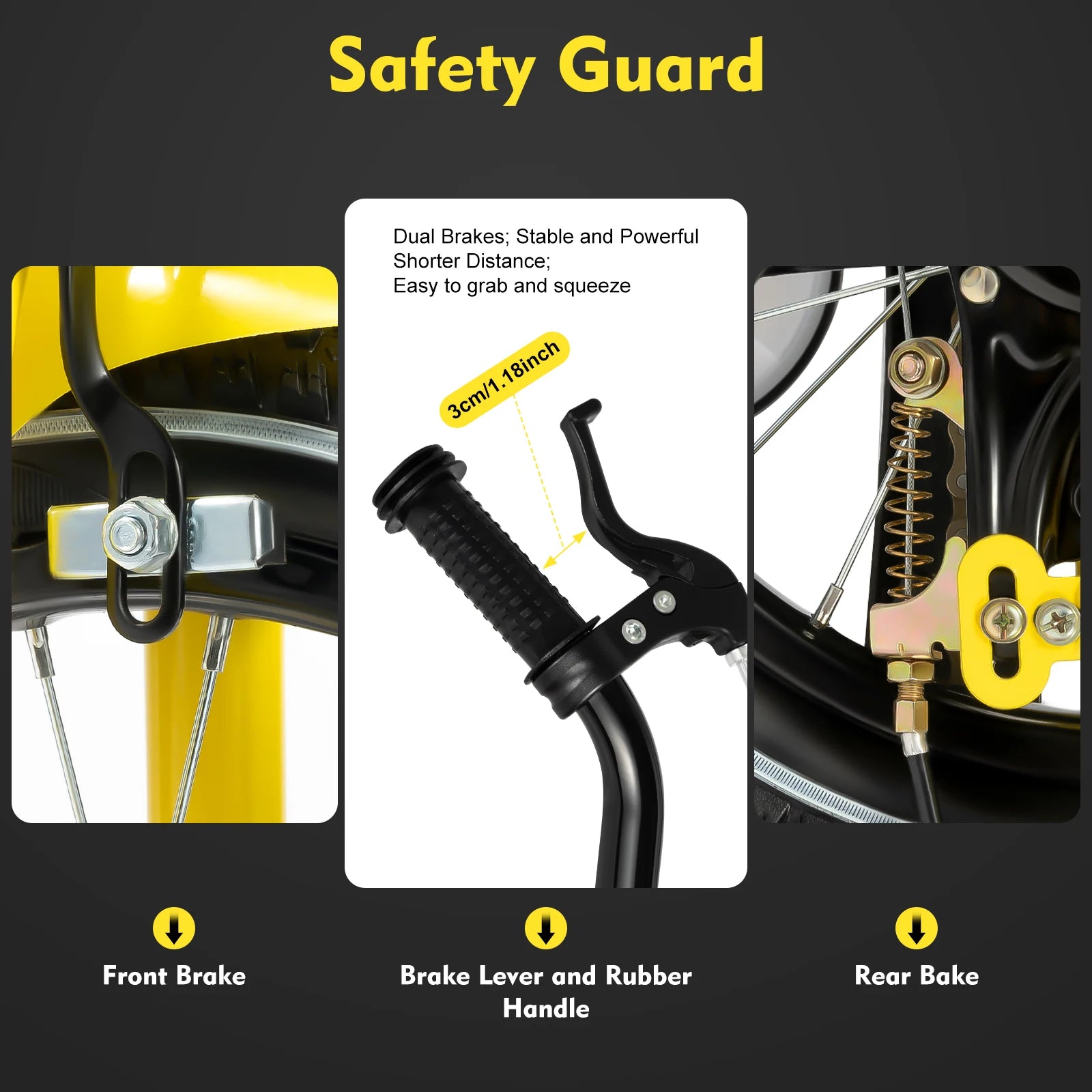 Safety Guard: Reliable dual brakes can provide stable and powerful braking force even in harsh weather conditions. The anti-slip tires also provide excellent grip and stability, ensuring safe cycling. Meanwhile, the bicycle chain cover can protect children from getting hurt.