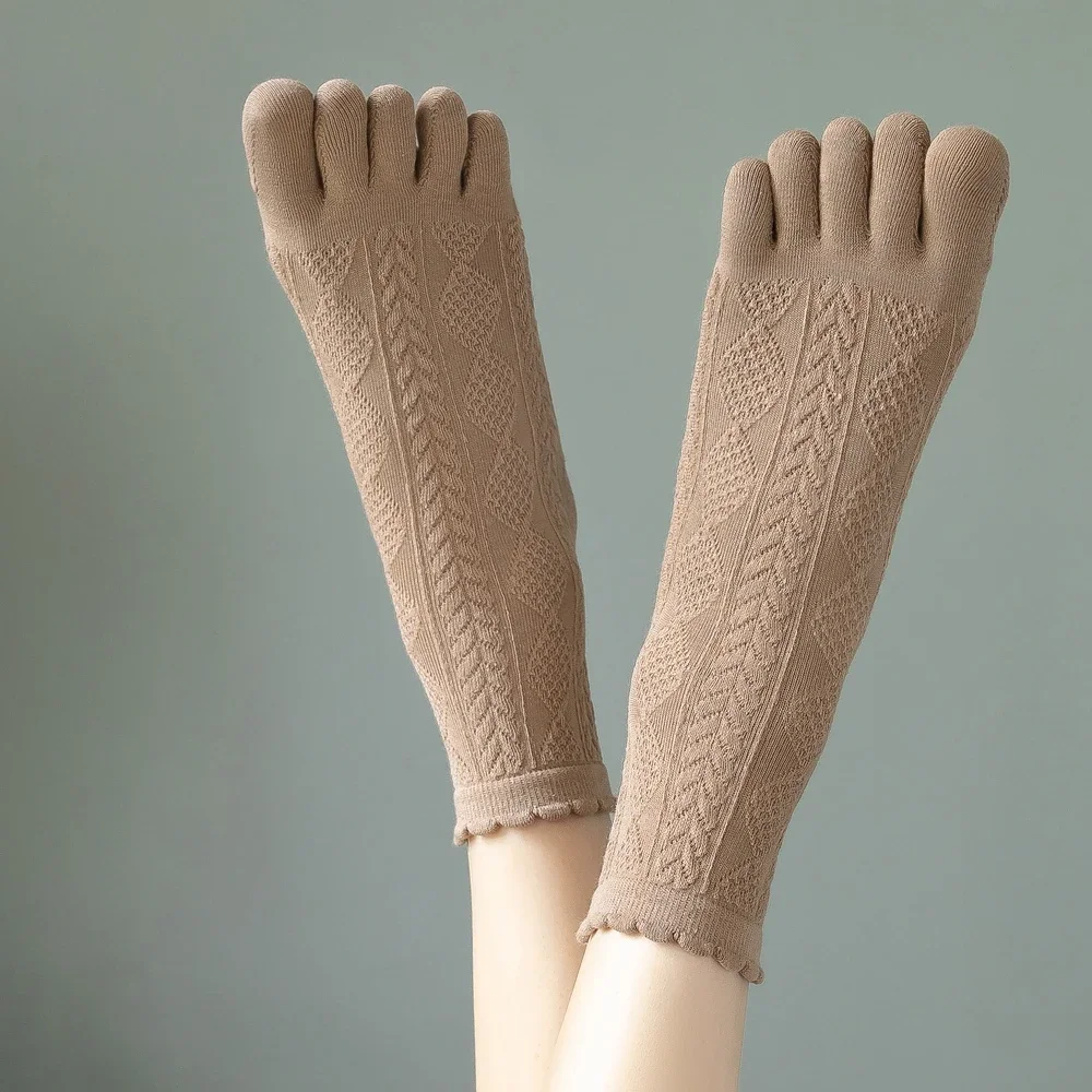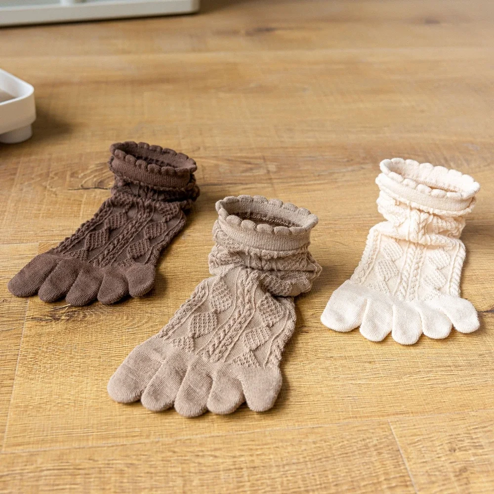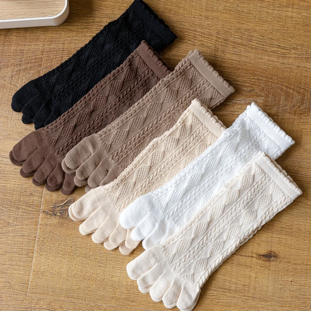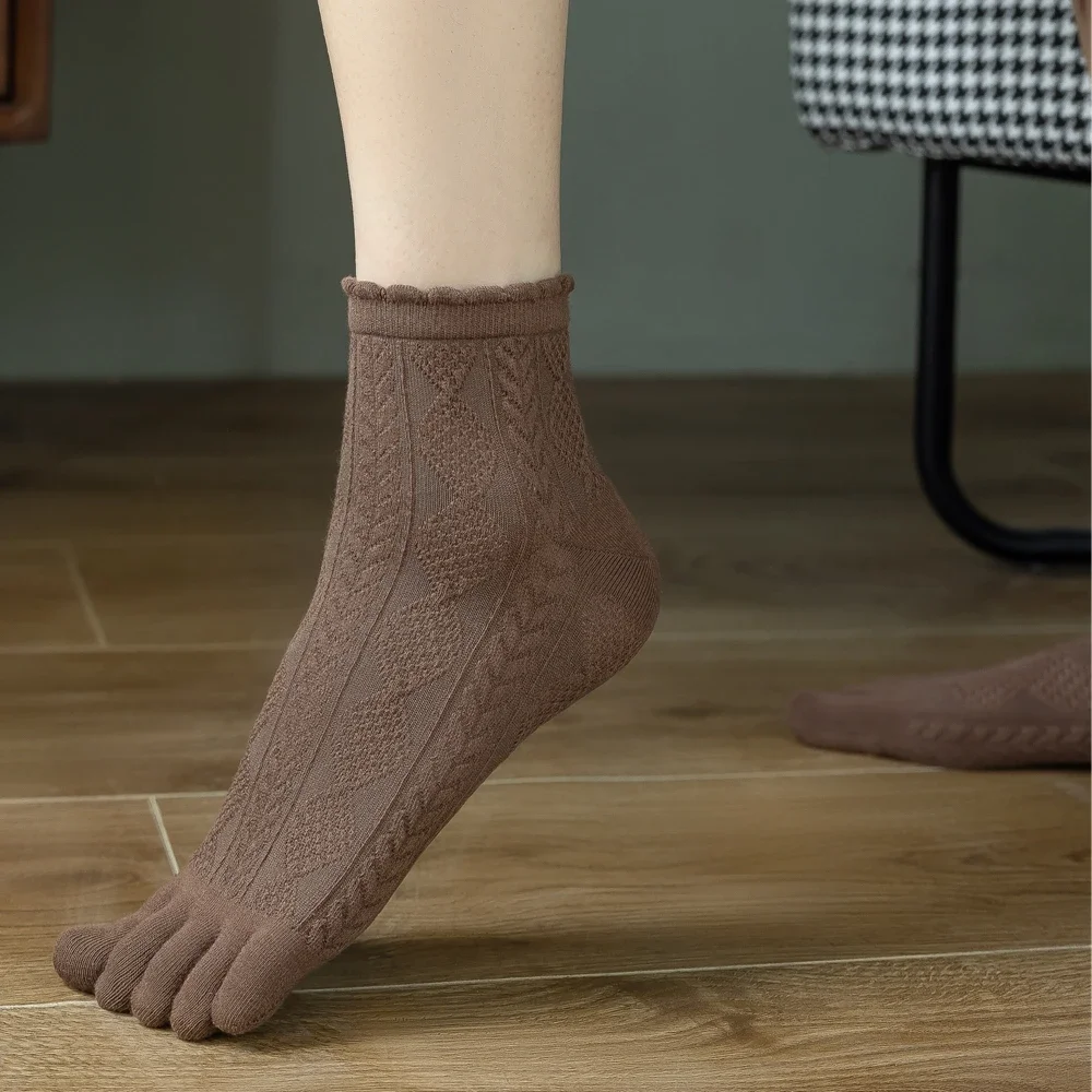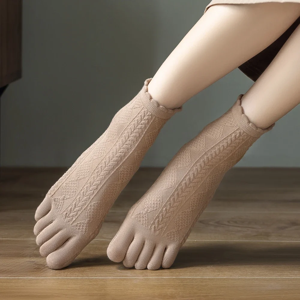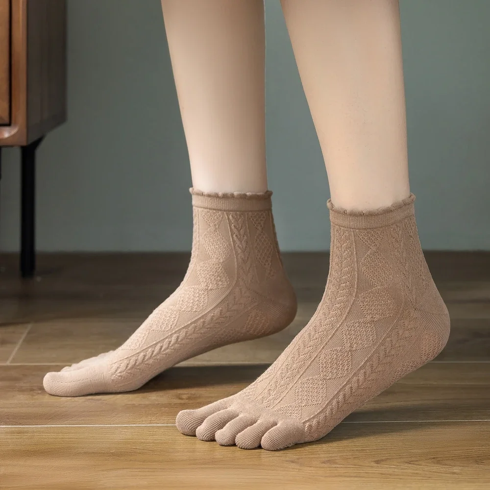 3 Pairs Summer Mesh Toe Socks Women Embroidered Floral Five Finger Socks High Quality Cotton Athletic Socks
