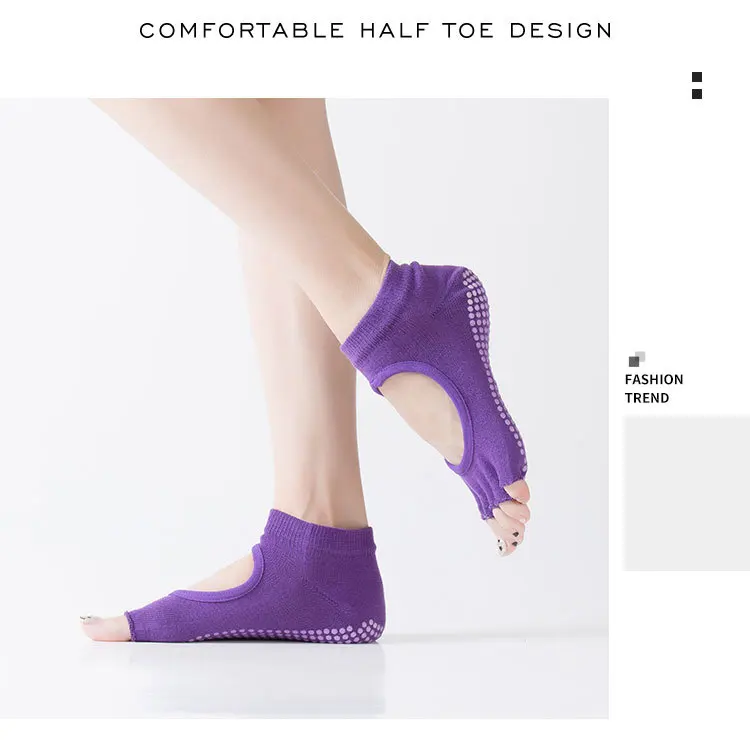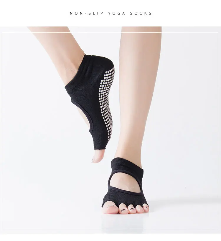 3 Pairs Women Backless Five Toe Yoga Socks Non-Slip Cotton Dance Ballet Pilates Socks Open Half Breathable Fitness Sports Socks