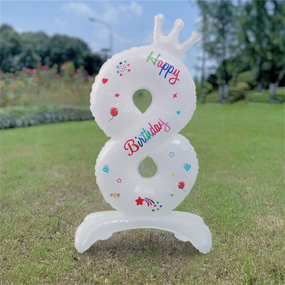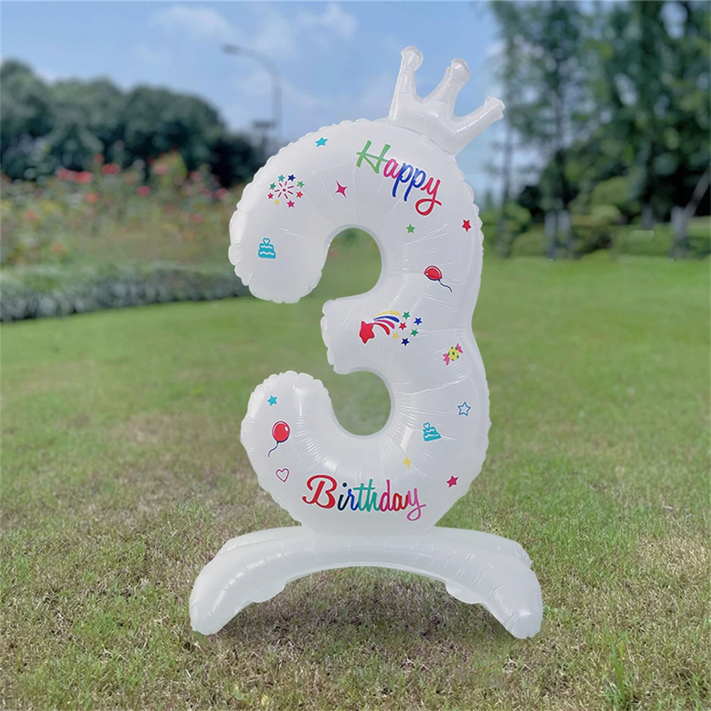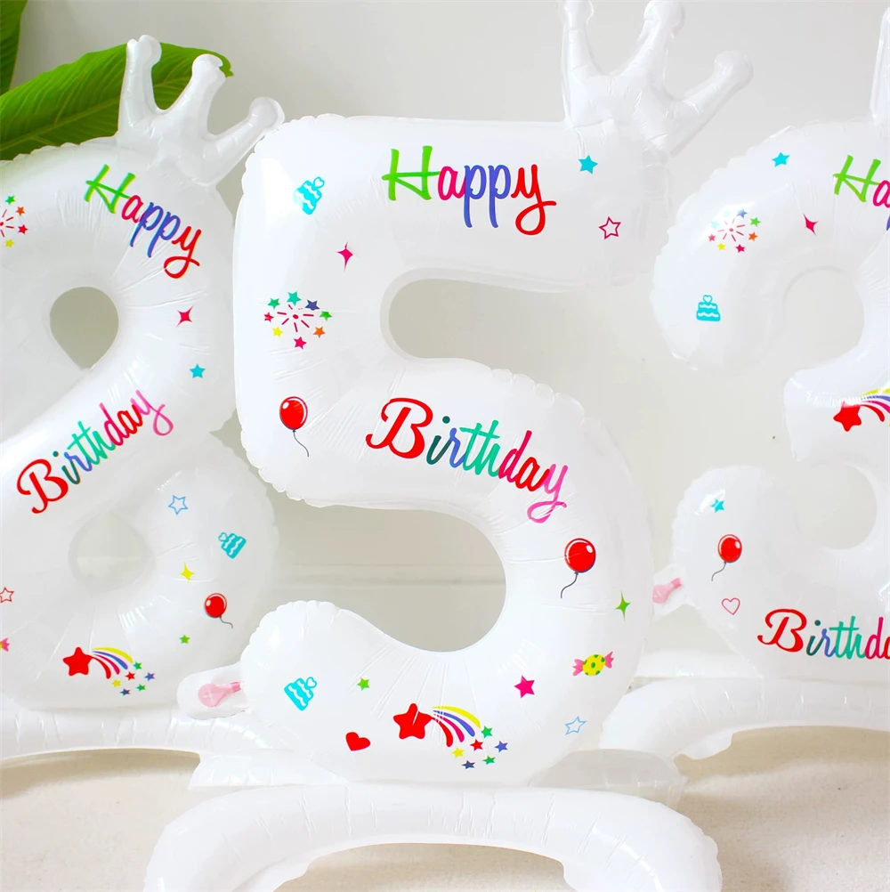 32inch White Crown Number Standing Balloon 0-9 Digital Balloons For Children's Happy Birthday Party Anniversary Decoration Golob