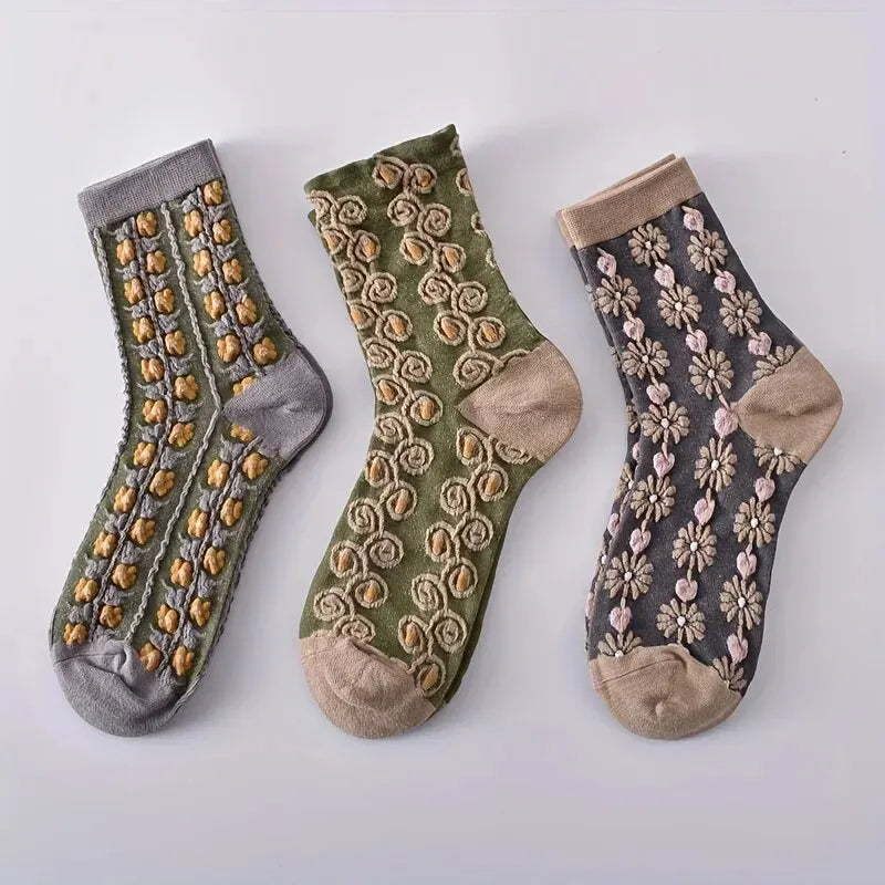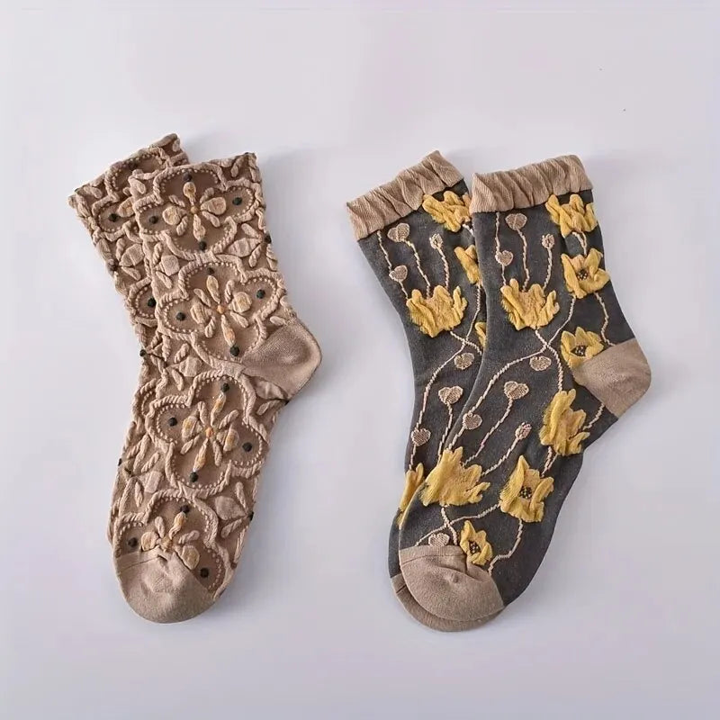 Unique Design: 3D floral textured socks with retro court style, adding a touch of elegance to your outfit.