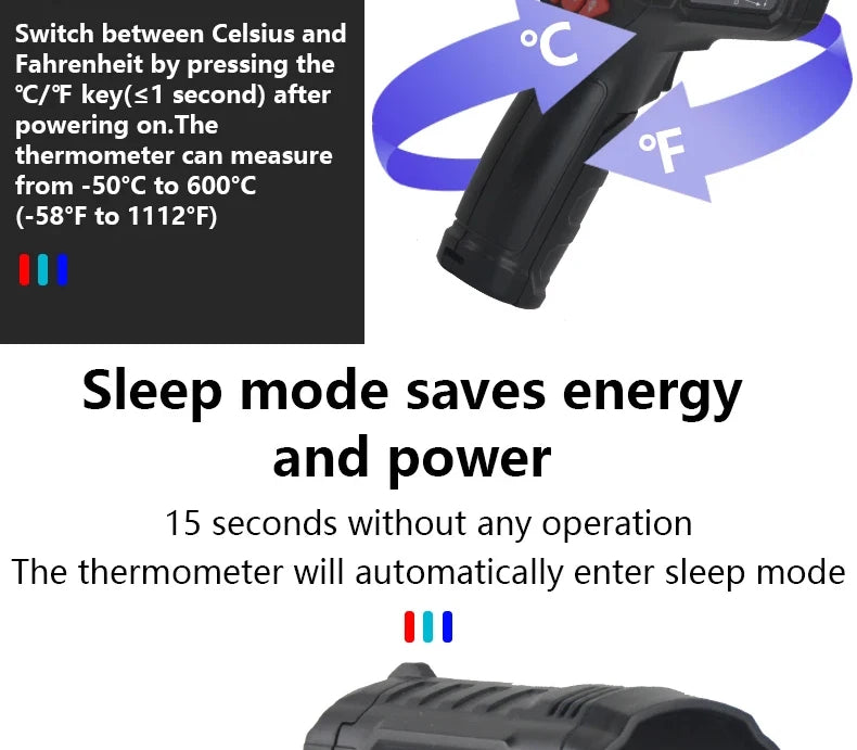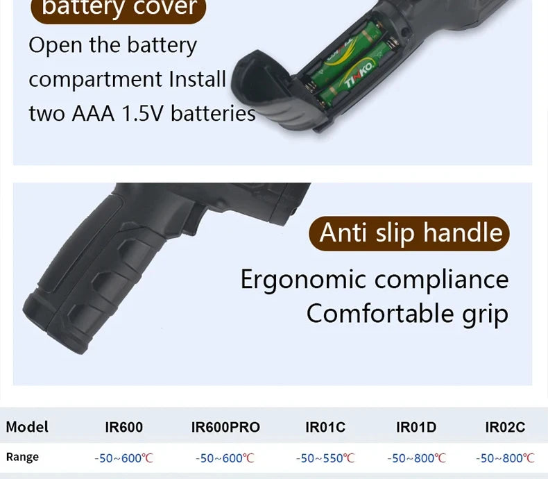 -50~800℃ Digital Thermometer Infrared Thermometers Non-contact Pyrometer Kitchen Laser Temperature Meter Hygrometer Mestek