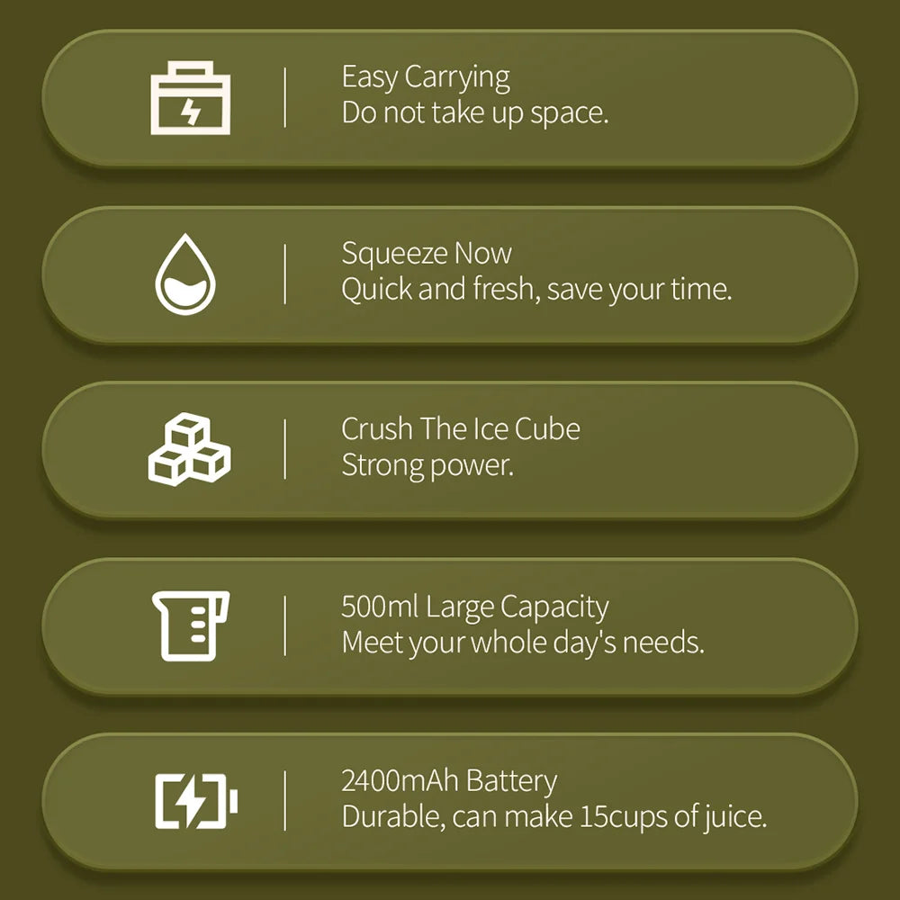 5.2400mAh Battery,Durable, can make 15cups of juice.