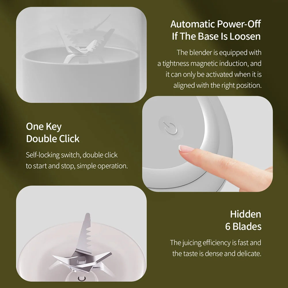 Portable USB juicer Fresh Juice Bottle Blender Plus 500ml Wireless Fruit Mixers 6 Blades 2400mAh Food Milkshake Ice Crush Cup