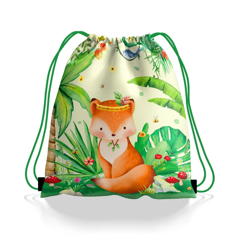 6/12//24/30pcs Jungle Animal Drawstring Bags Jungle Wild Animals Party Favors Kids Jungle Animals Birthday Party Supplies