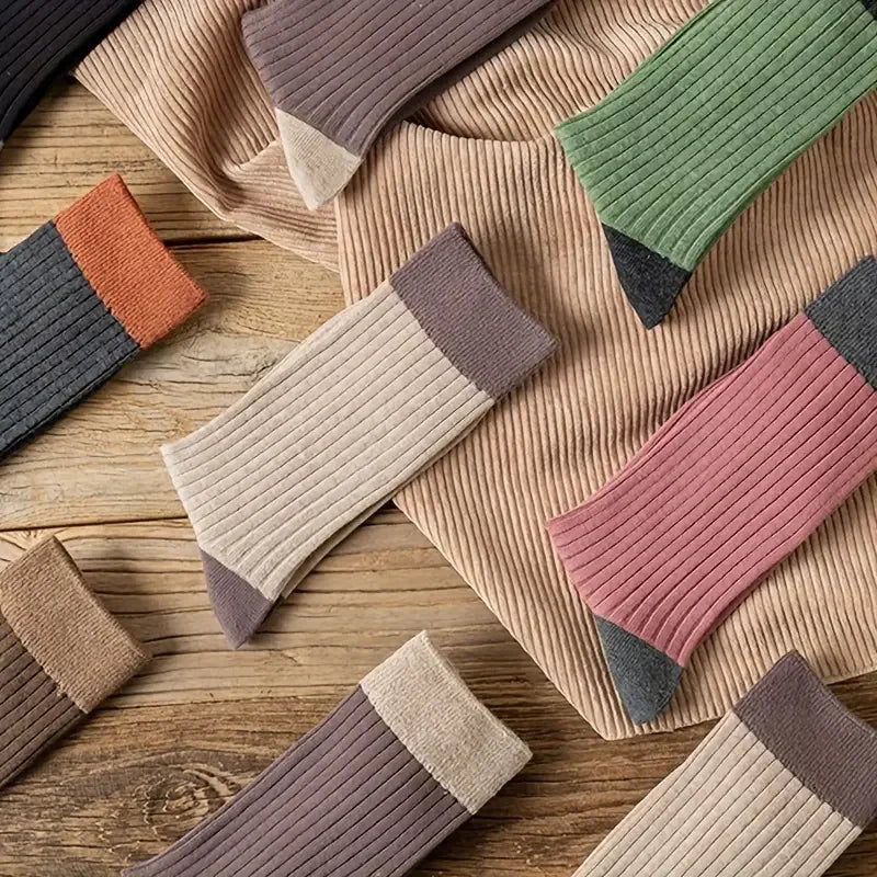 7 Pairs of Cozy Patchwork Crew Socks - Soft, Breathable, and Comfy Mid Tube Socks for Fall & Winter
