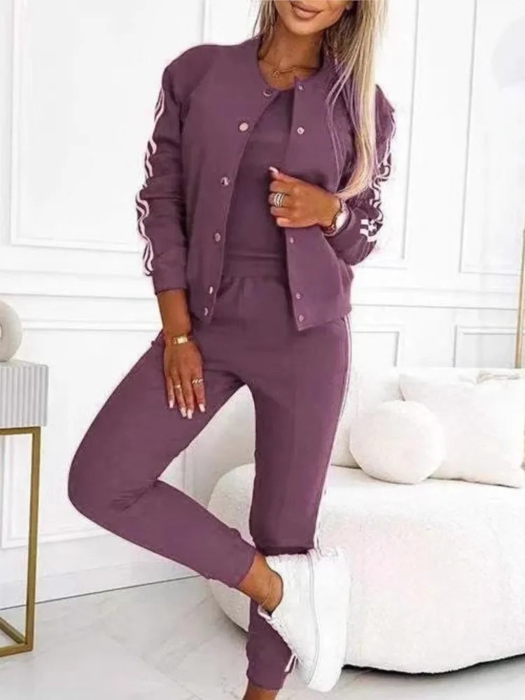 Autumn Winter Fashion Red Black Casual 3 Piece Sets Women O-neck Slim Tank Top + Button Long Sleeve Jacket And Pencil Pant Set