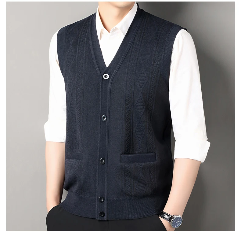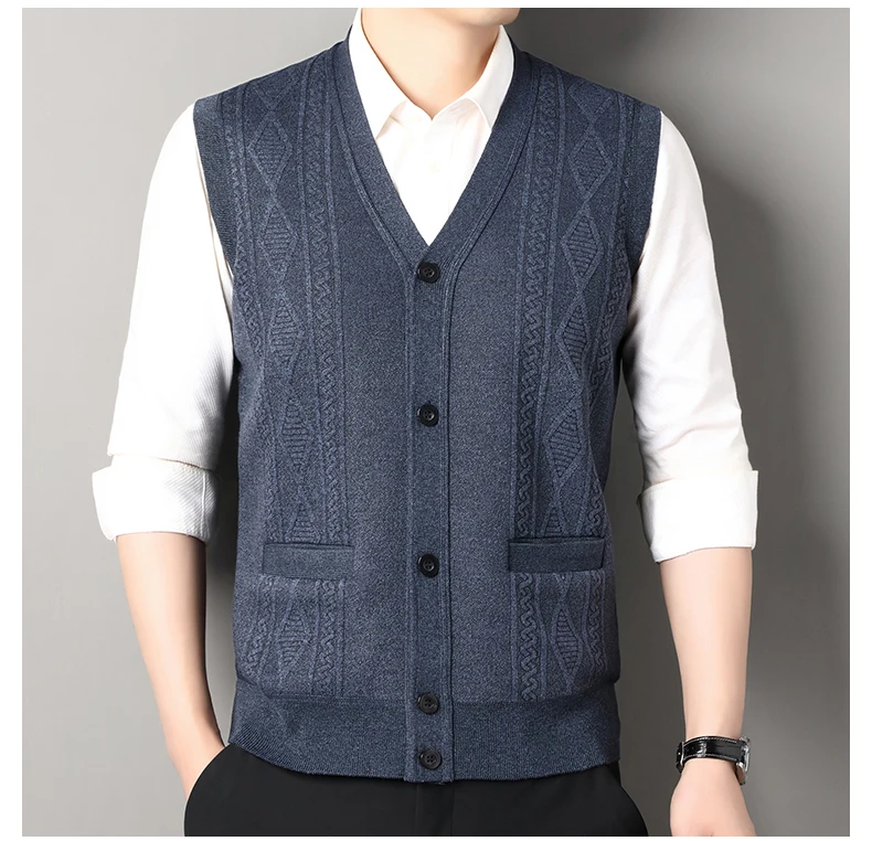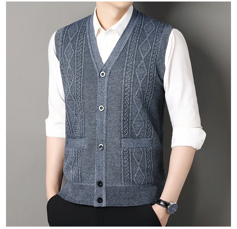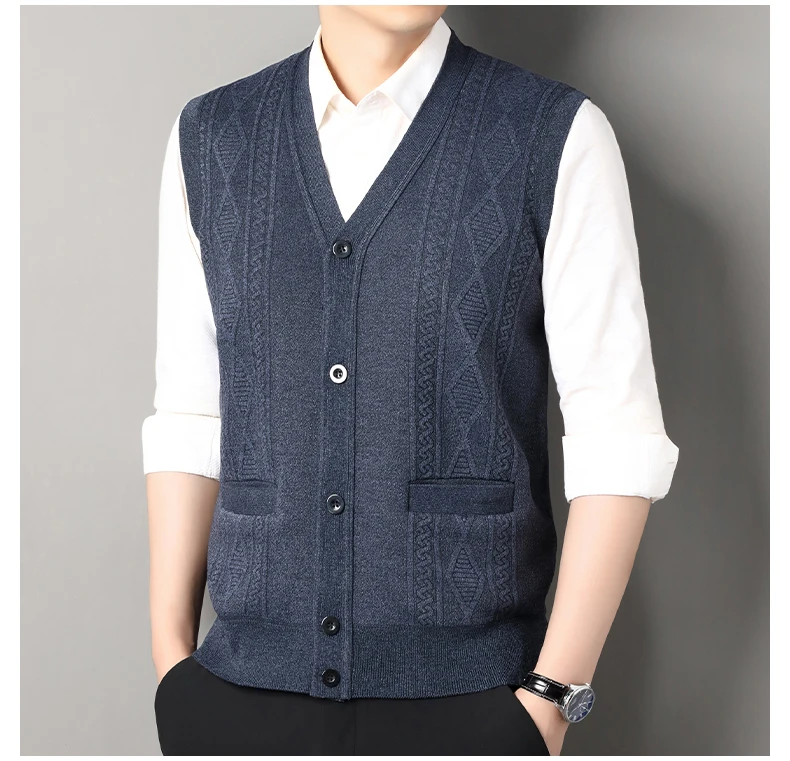 Autumn Winter Mens Vest Casual Sweater Vests Button Up Cardigan Men's V-neck Fashion Knitted Cardigans