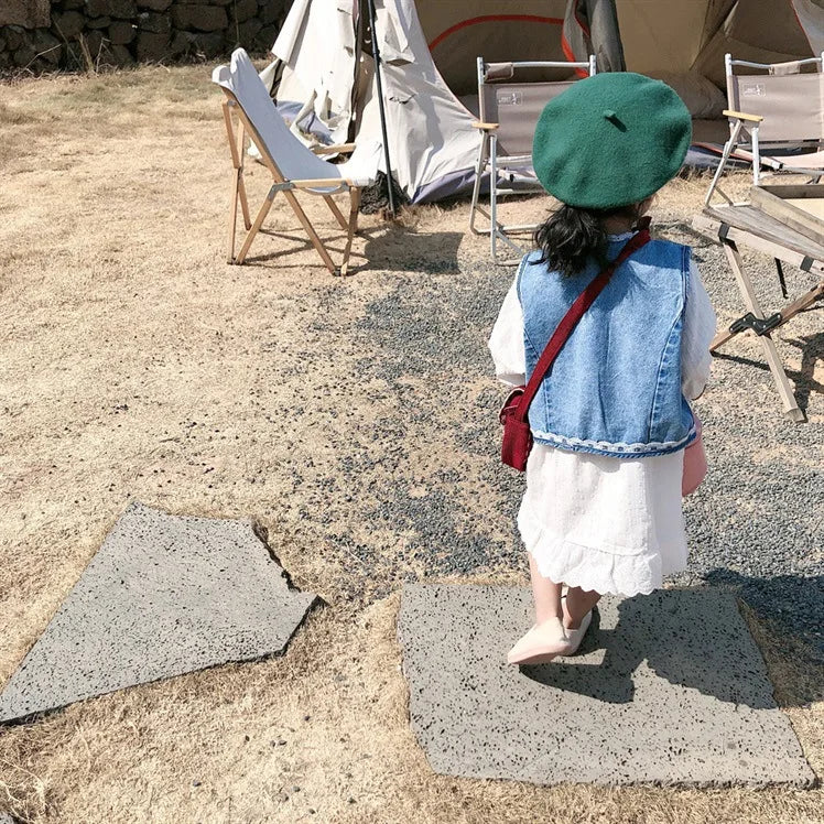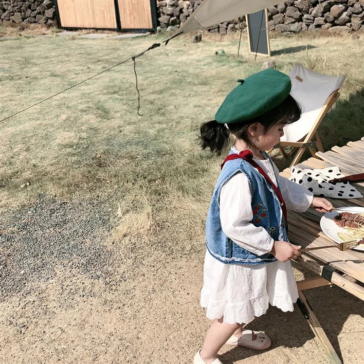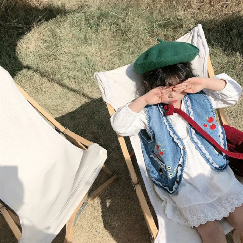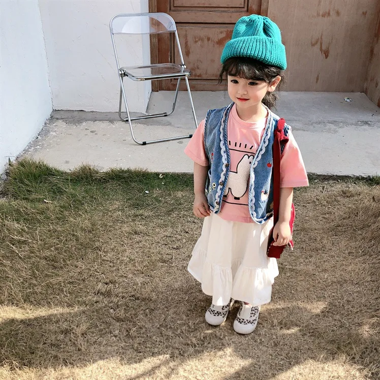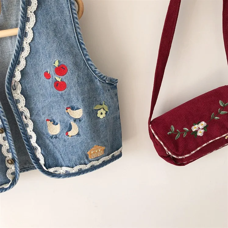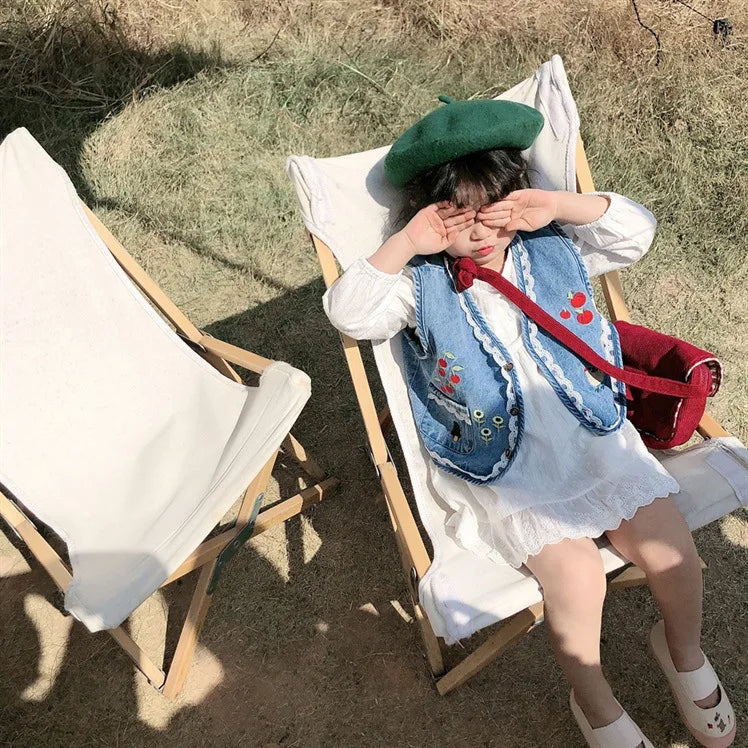 Baby and Girls Sweet Embroidered Work Single-Breasted Denim Vest Jackets School Kids Waistcoat Child Outfit Tops For 1-10 Yr