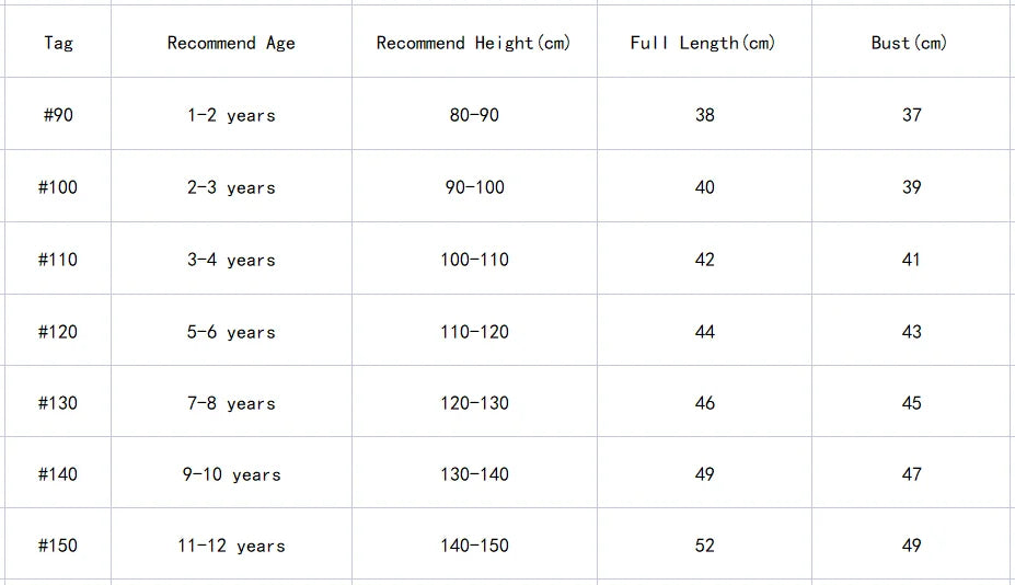 size_info: {"sizeInfoList":[{"length":{"cm":"80-90","inch":"31.50-35.43"},"size":"1-2 years","vid":-1},{"length":{"cm":"90-100","inch":"35.43-39.37"},"size":"2-3 years","vid":-2},{"length":{"cm":"100-110","inch":"39.37-43.31"},"size":"3-4 years","vid":-3},{"length":{"cm":"110-120","inch":"43.31-47.24"},"size":"5-6 years","vid":-4},{"length":{"cm":"120-130","inch":"47.24-51.18"},"size":"7-8 years","vid":-5},{"length":{"cm":"130-140","inch":"51.18-55.12"},"size":"9-10 years","vid":-6},{"length":{"cm":"140-150","inch":"55.12-59.06"},"size":"11-12 years","vid":-7}]}