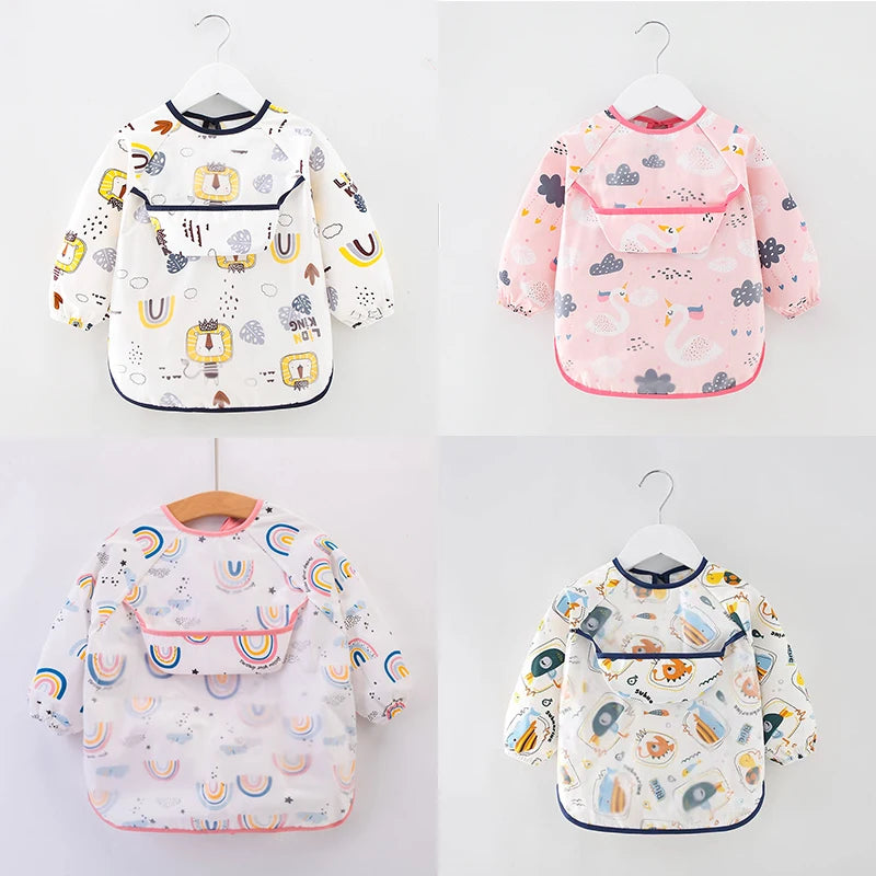 Baby Apron Bibs Toddler Long Sleeve Scarf Waterproof Art Smock Feeding Bib Infant Boys Girls Kid Burp Cloth Bandana New Arrivals