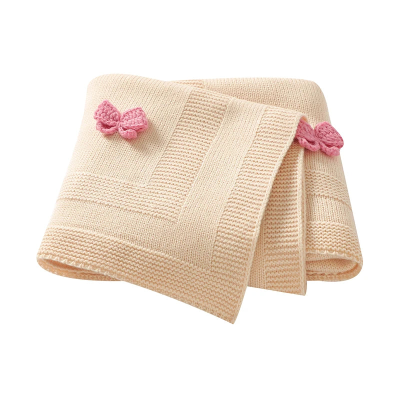 Baby Blankets Knit Newborn Boy Girl Bedding Quilt 90*70CM Infant Stroller Swaddle Wrap Super Soft Fashion Cute 3D Bows Sleepsack