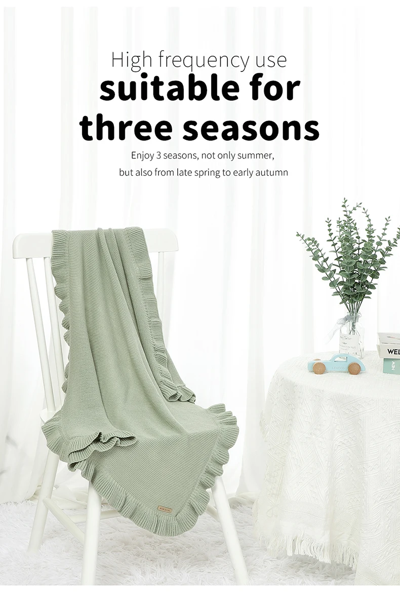 Baby Blankets Knitted Infant Boys Crib Bedding Quilt Girls Plaid 90*70cm Newborn Stroller Swaddling Warp Fashion Solid Ruffles