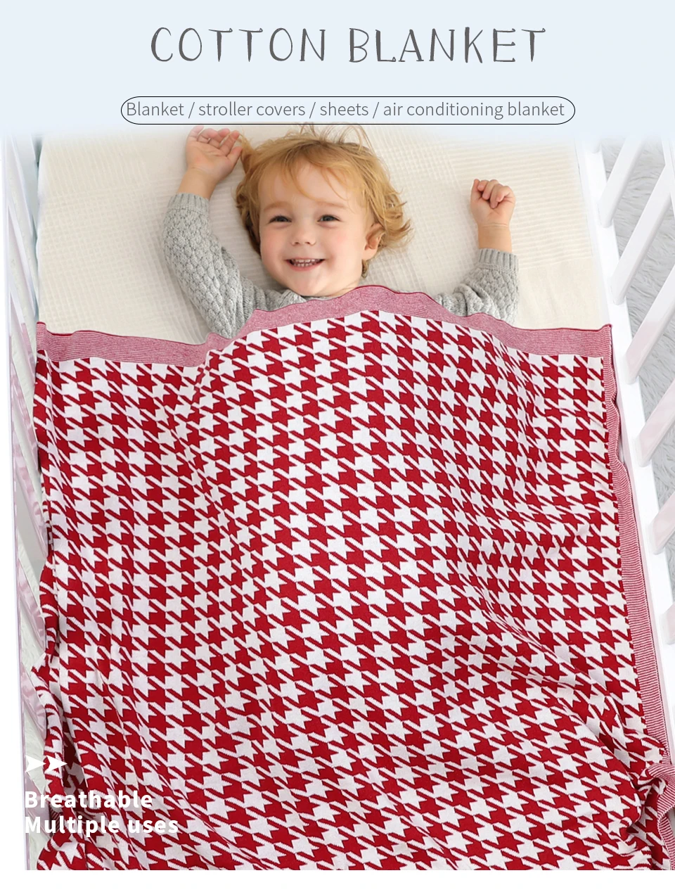Baby Blankets Newborn Cotton Swaddle Wrap Plaid for Infant Kids Boys Girls Ultra-Soft Reversible Knitted Toddler Receiving Mats