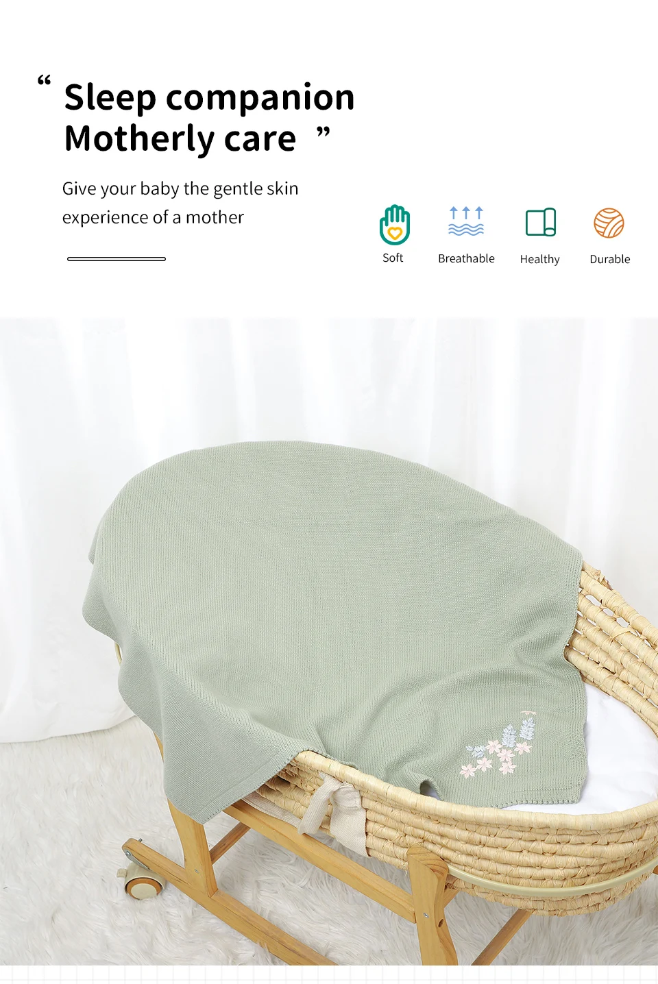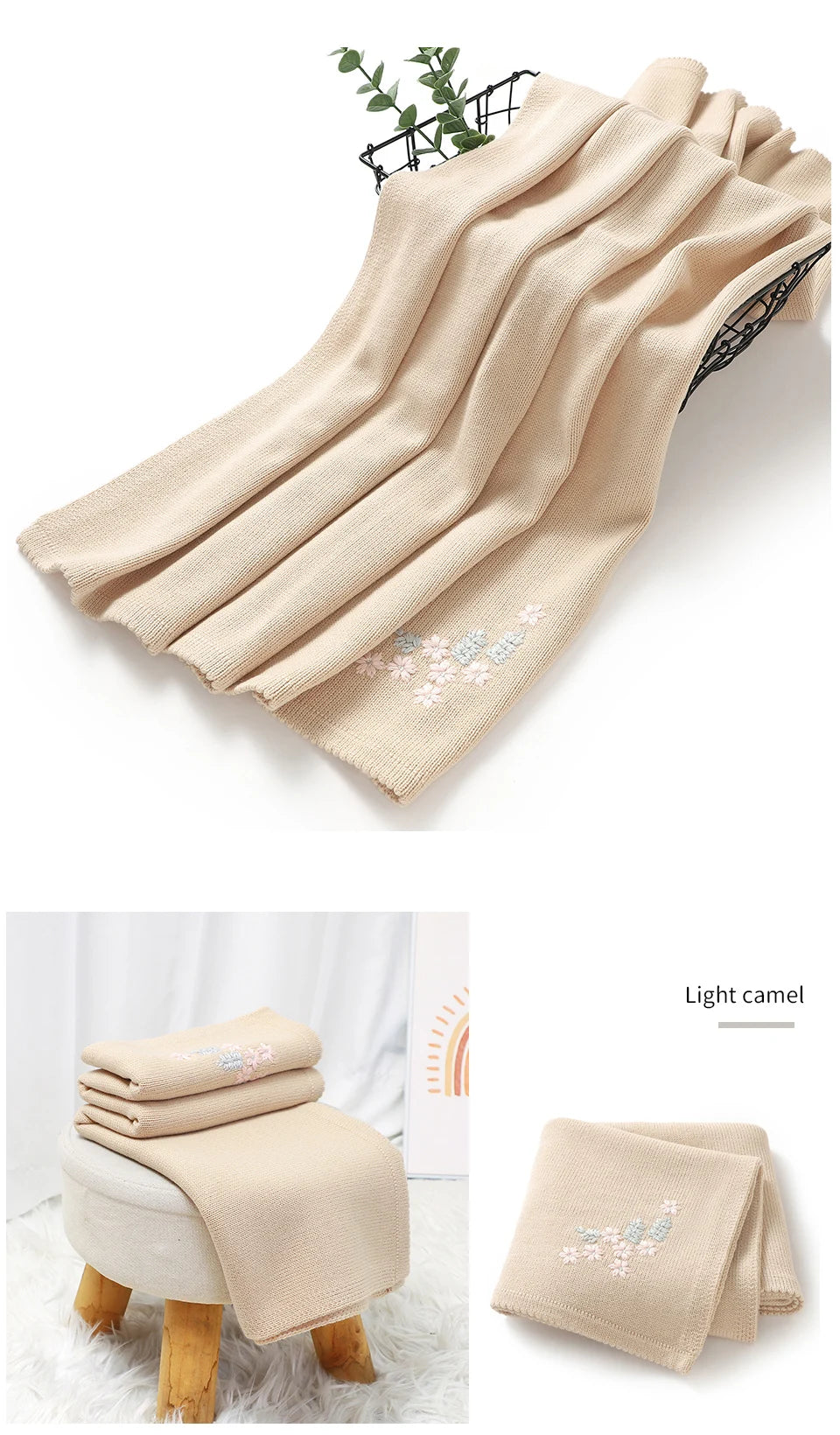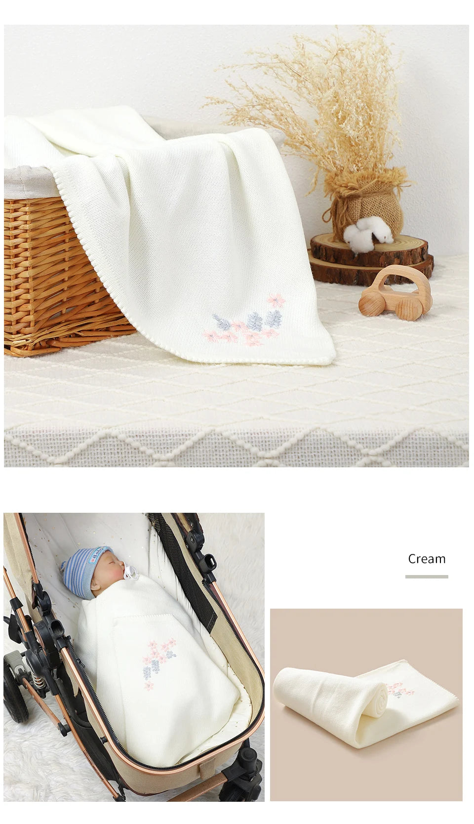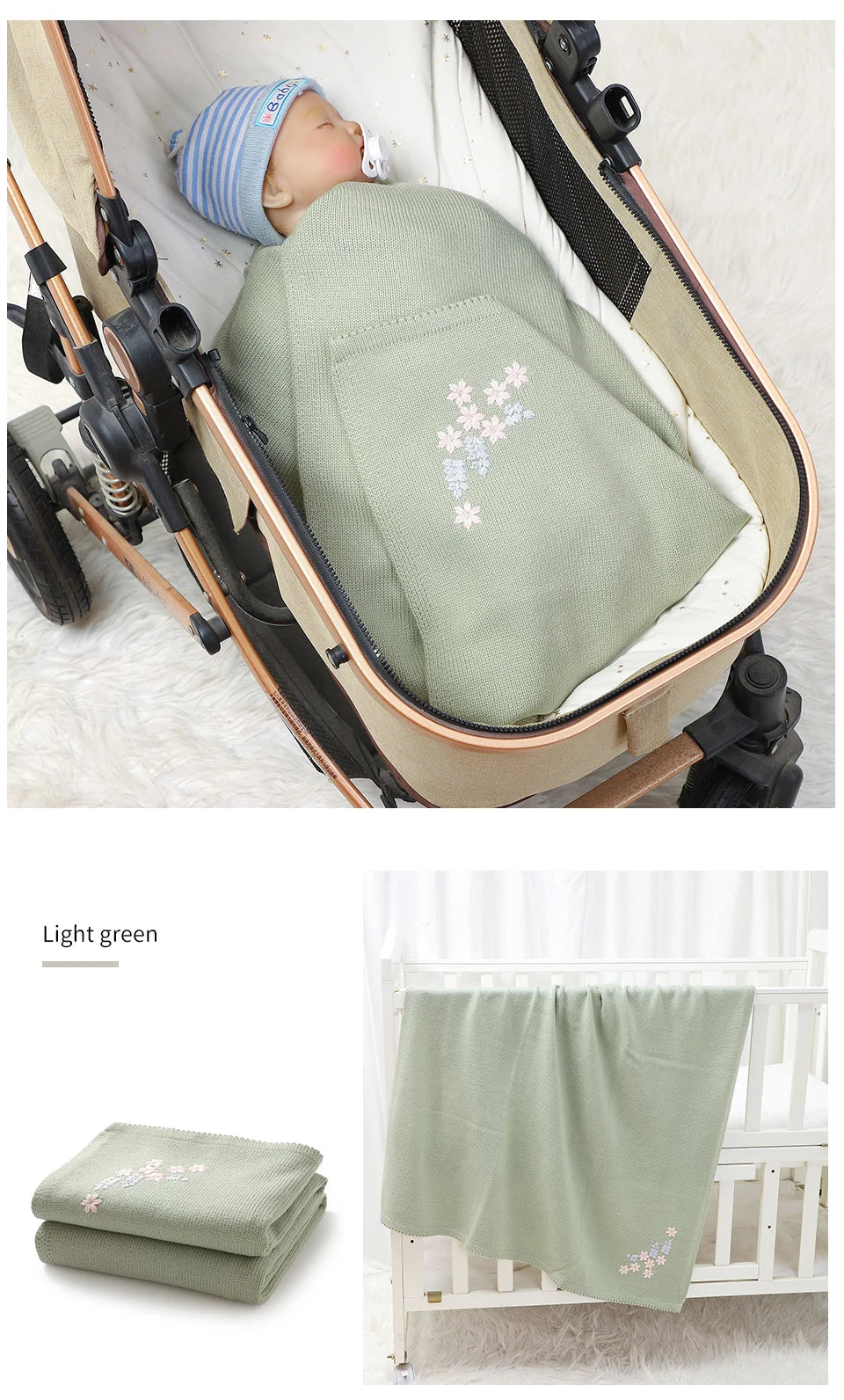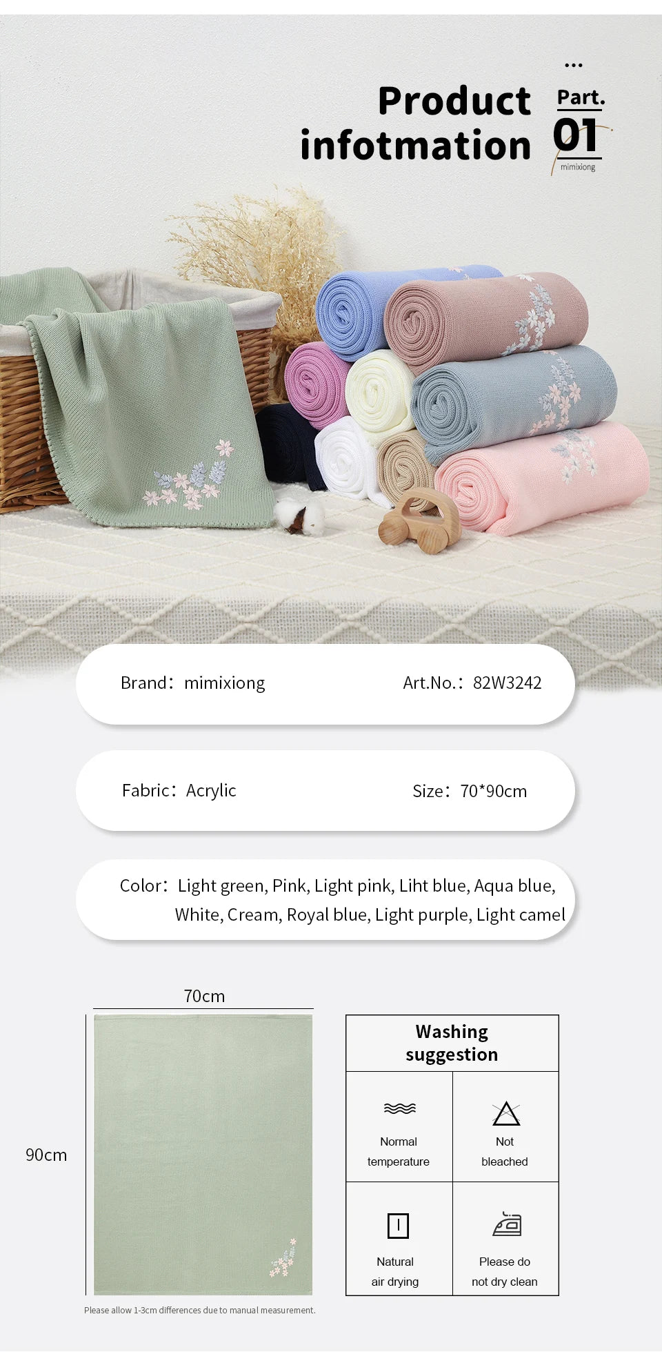 Baby Blankets Newborn Fashion Floral Embroideried Infant Boys Girls Stroller Nursery Swaddle Wrap Plaid 90*70cm Toddler Knit Mat
