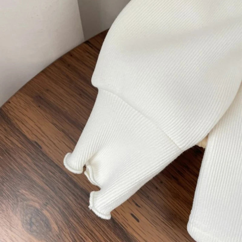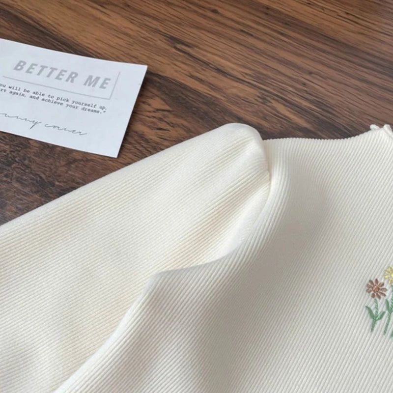 Baby Girls Top Winter Kids Warm Thickening Sweater Children Puff Sleeve Flower Embroidery Bottom Shirt 1-6 Years Casual Clothing