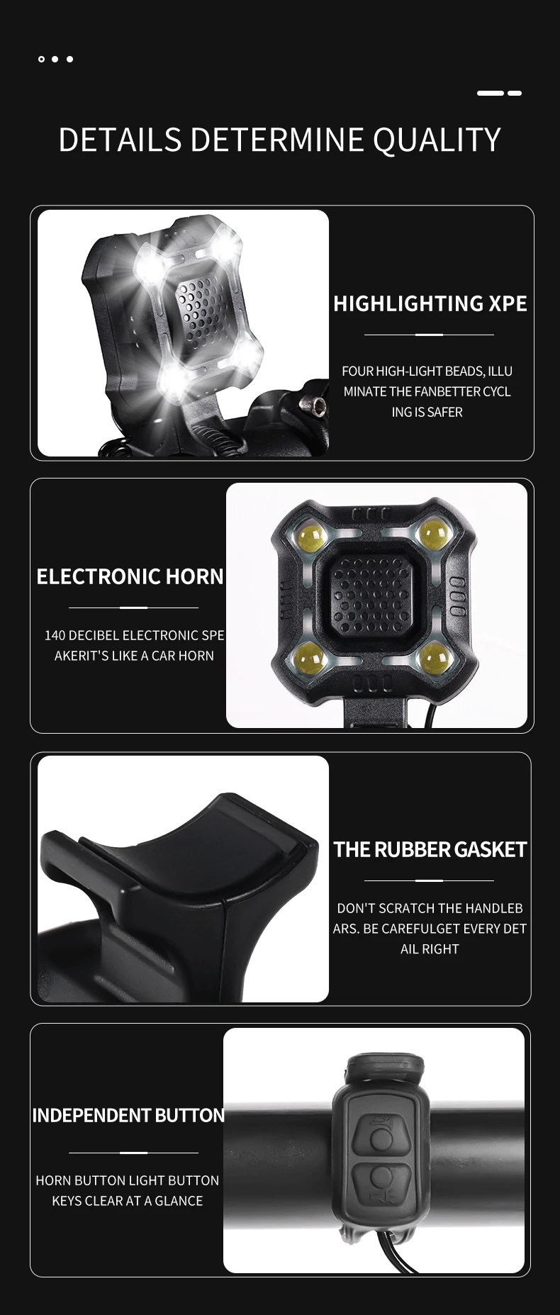 Bicycle Electronic Bell Bicycle Light Scooter E-bike Trumpet Alarm Bike Bell USB Charge Cycling Warning Alert Safety Riding
