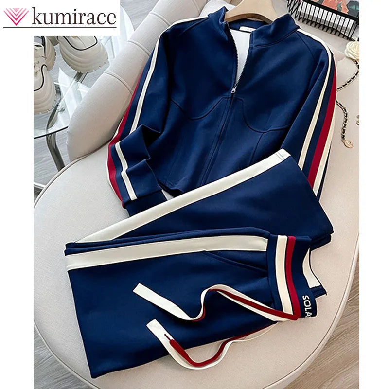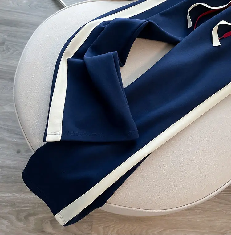 Blue Casual Sports Suit Women's Autumn and Winter Stylish Slimming Cardigan Sweatshirt Straight Leg Pants Two-piece Setpant Sets