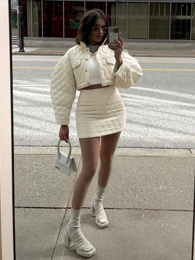 Buckle Lapel Long Sleeve Cotton Jacket Top Women's Casual Skirt Suit