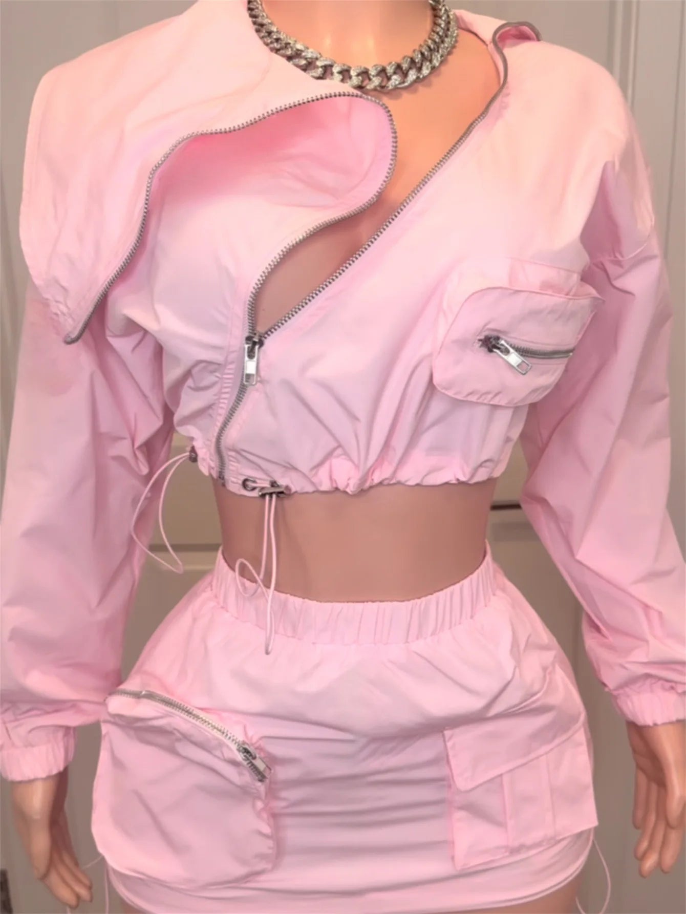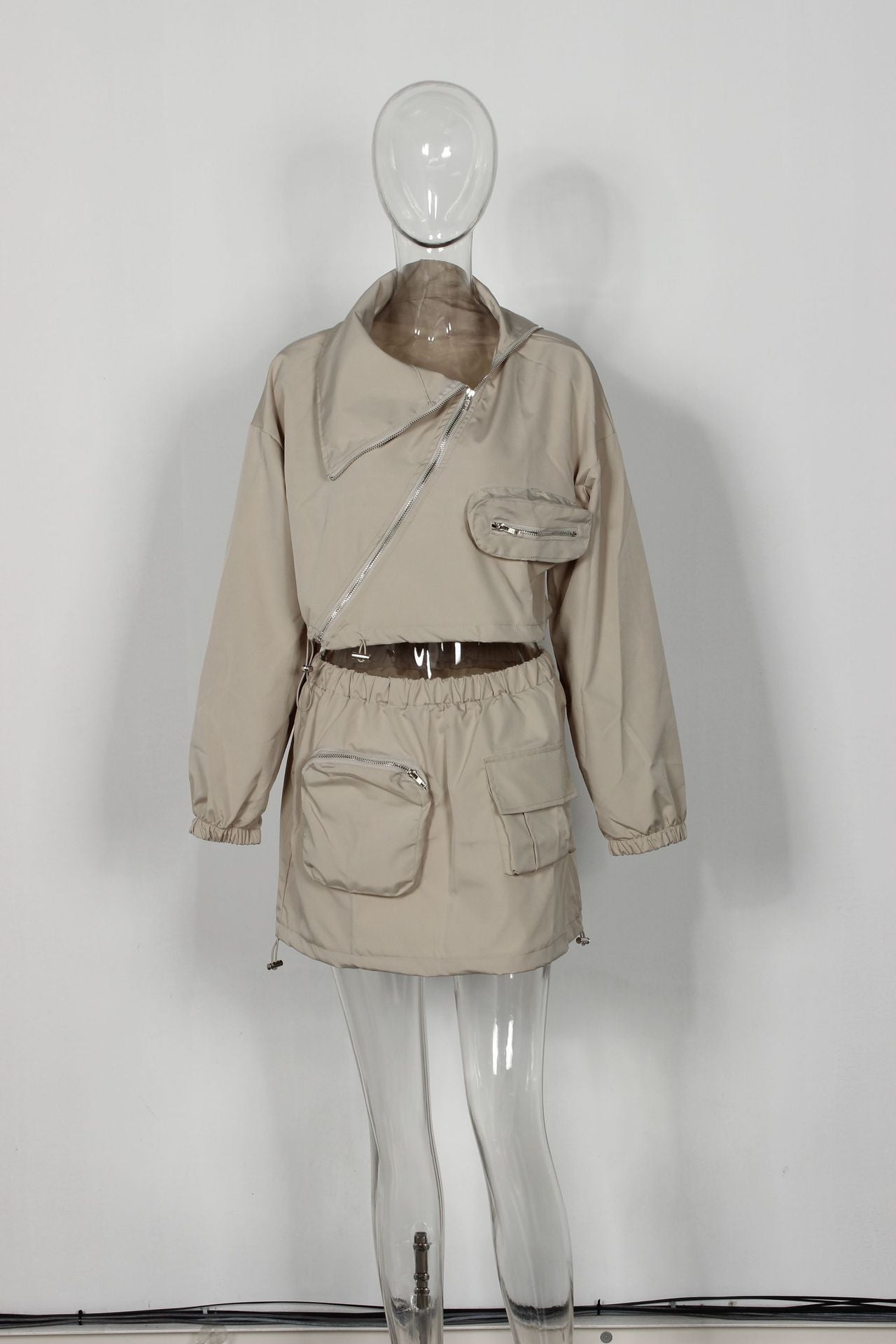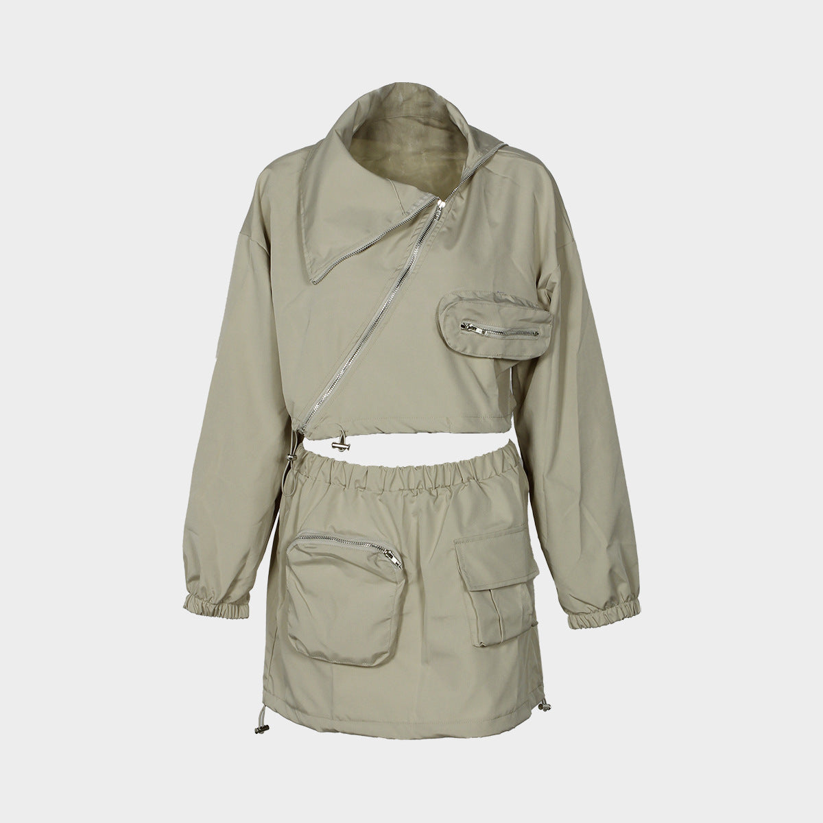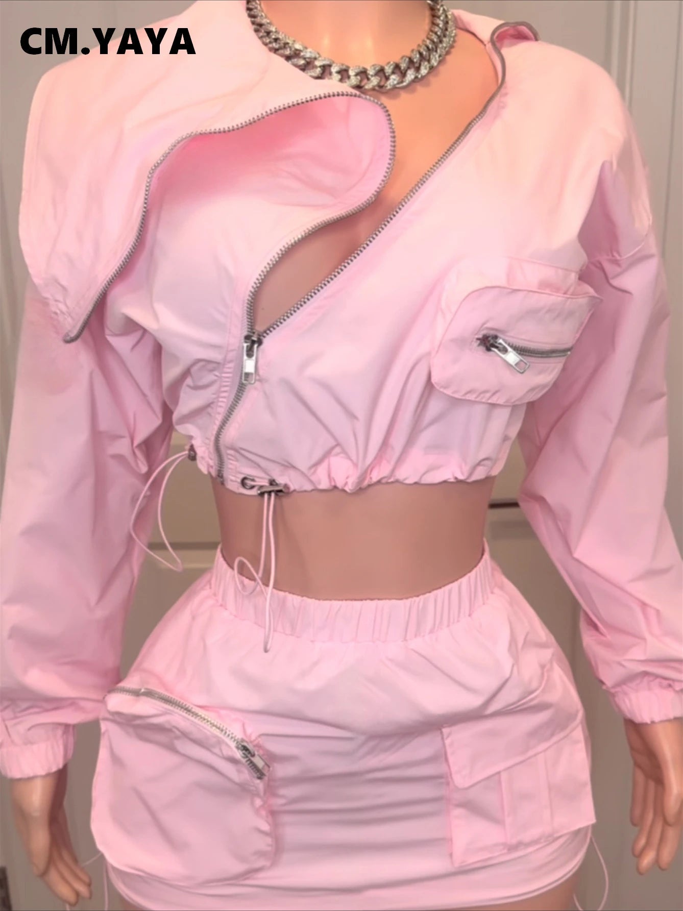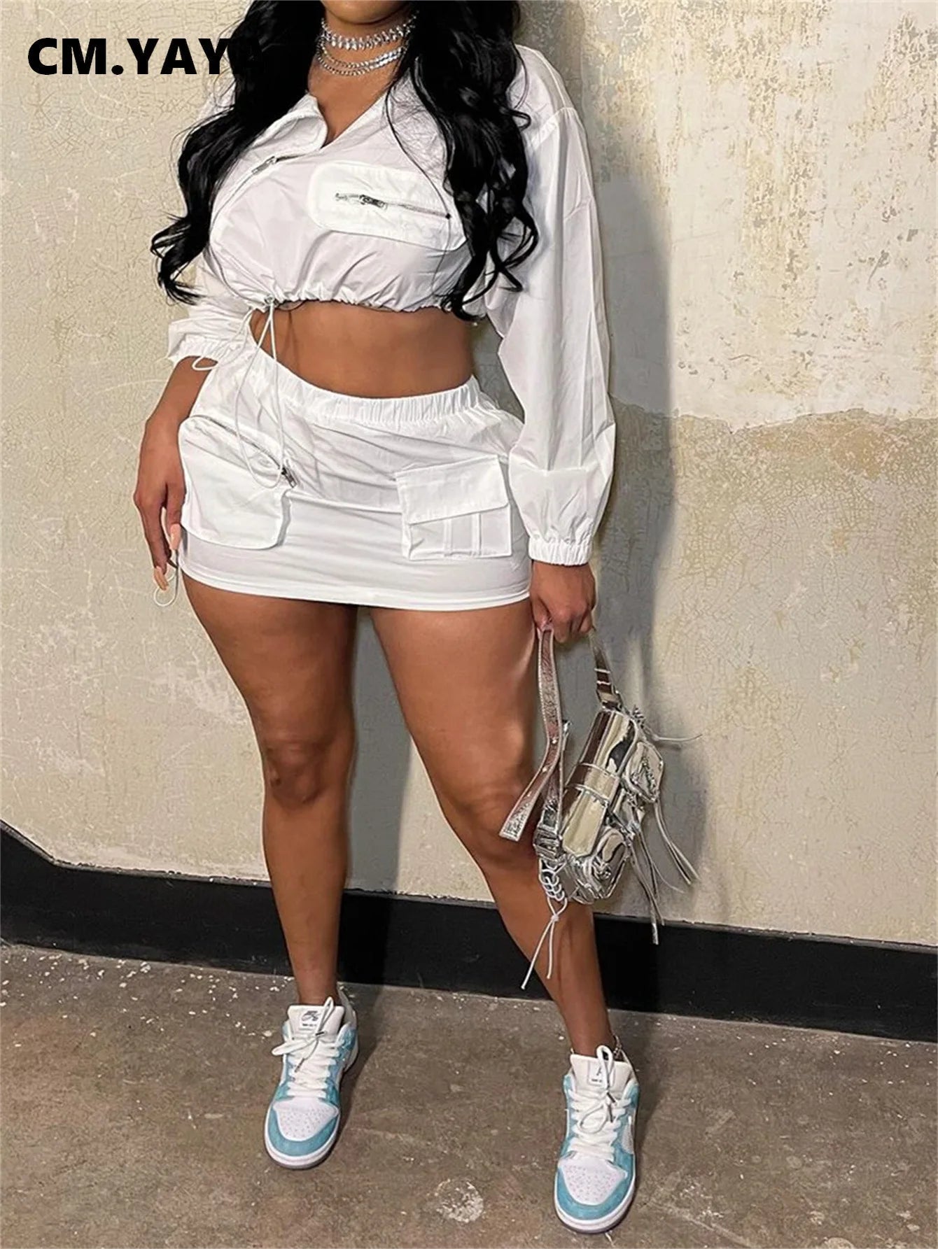 CM.YAYA Fashion Safari Style Women's Set Long Sleeve Zipper Fly Tops and Cargo Midi Mini Skirts Suit 2025 Two 2Piece Sets Outfit