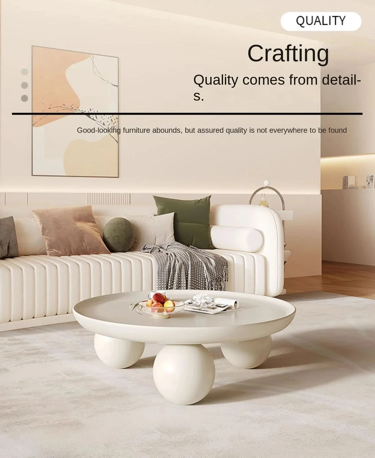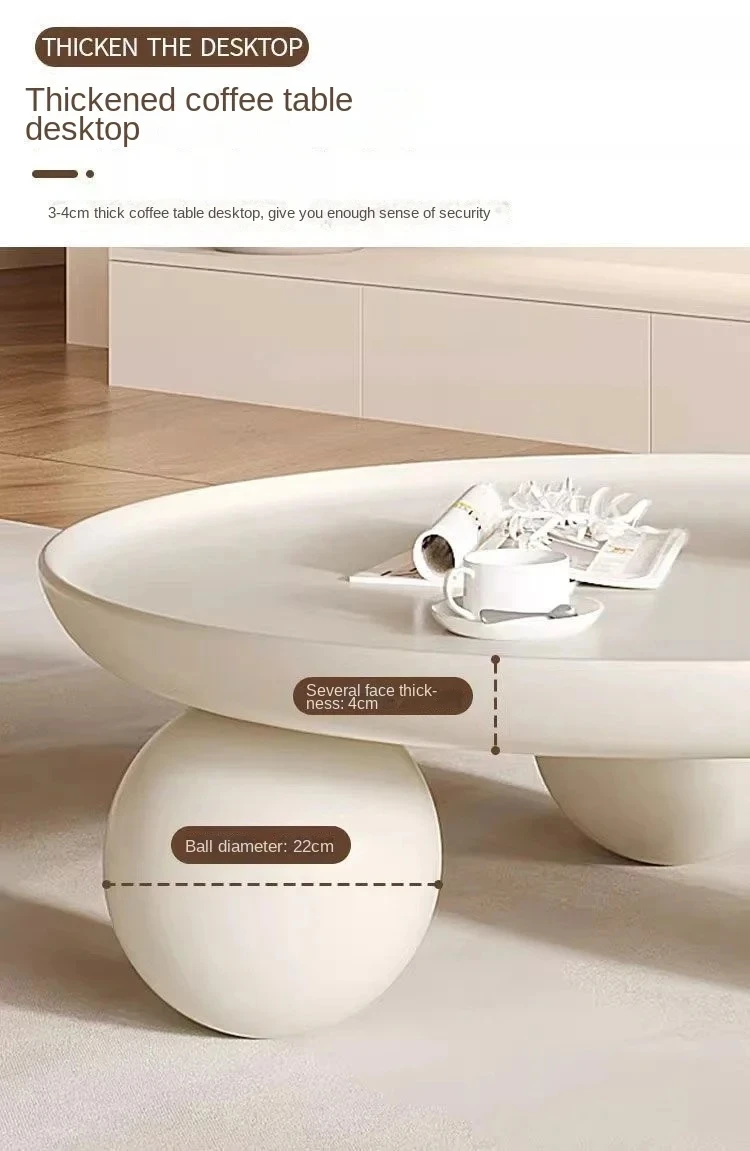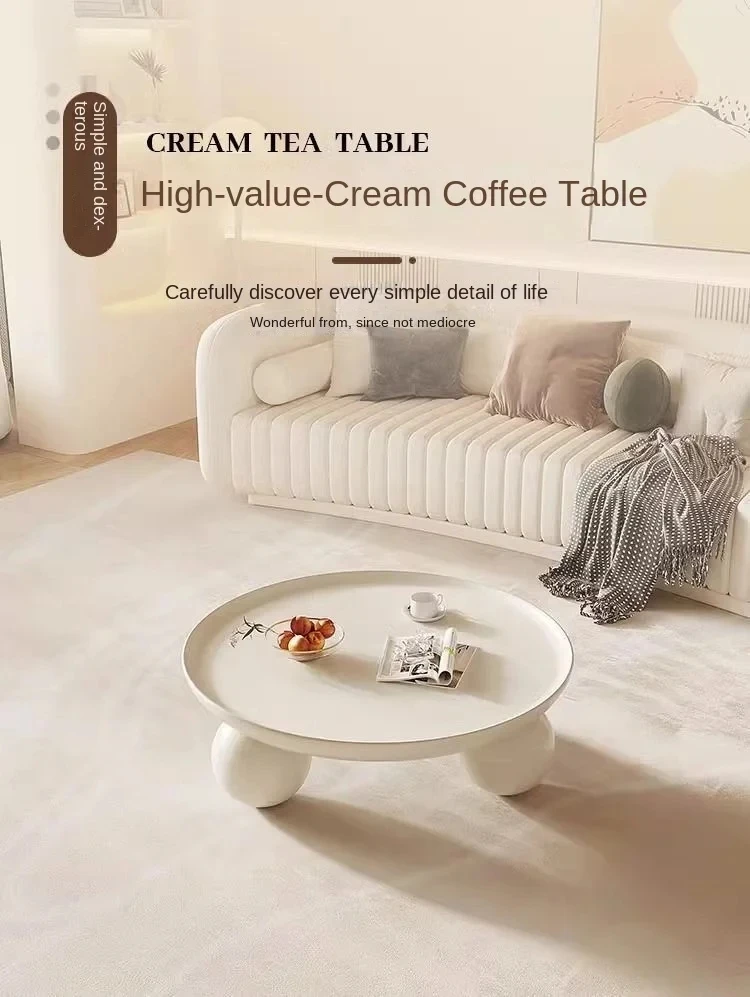 Nordic Combination Creative Stainless Steel Tea Table Simple Light Luxury Home Cream Round Modern Living Room Table