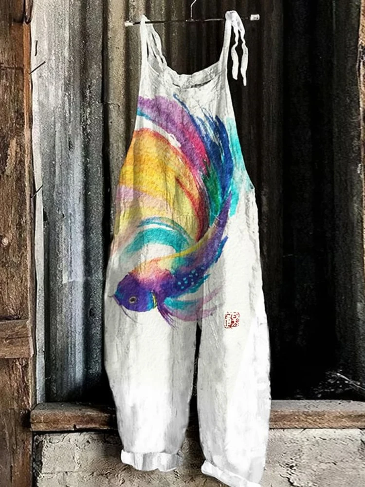 Colorful Fish Print Sexy Adjustable Jumpsuit Shorts Urban Street Trend Women's Pants Casual Adjustable Jumpsuit Pants S-5XL