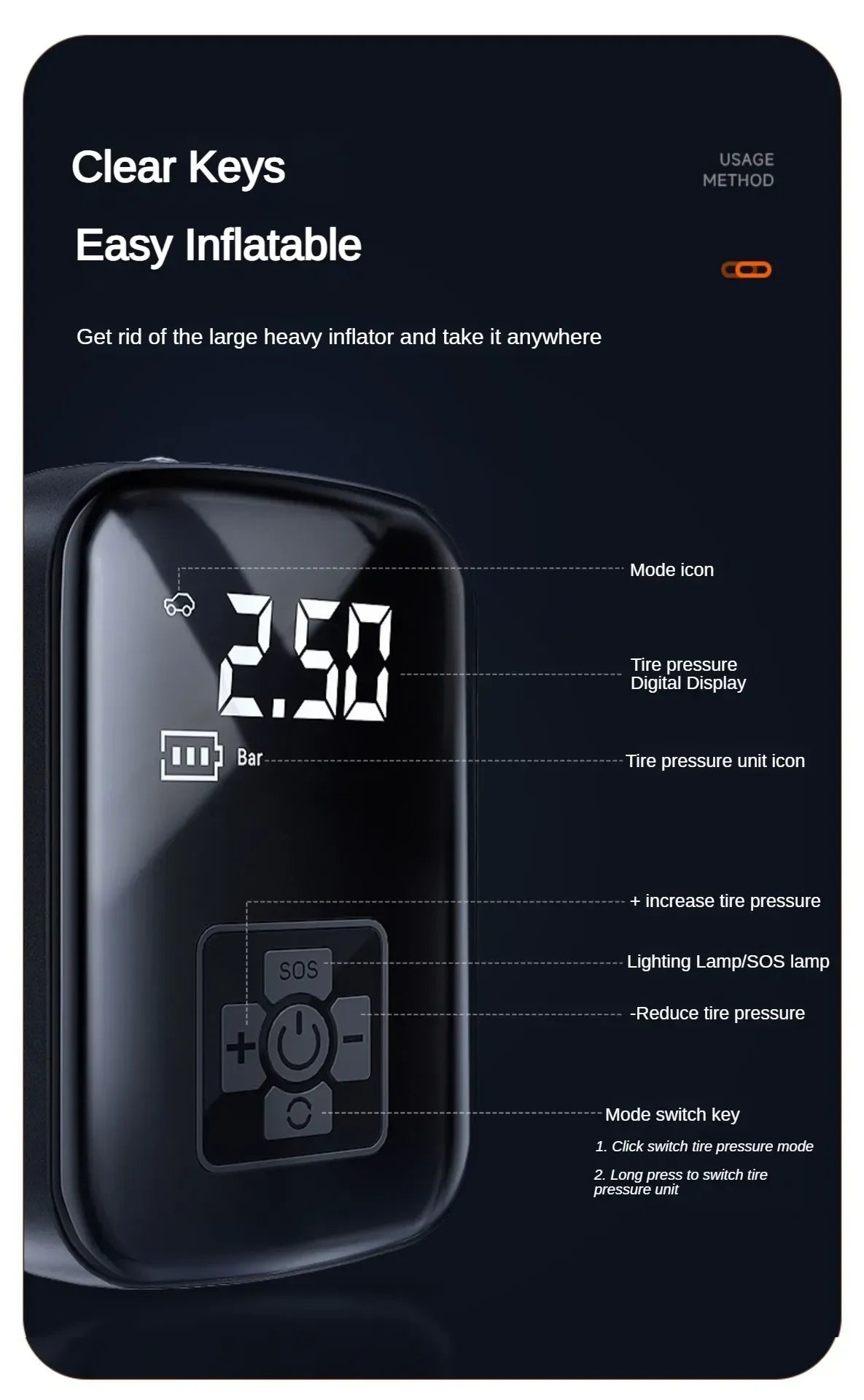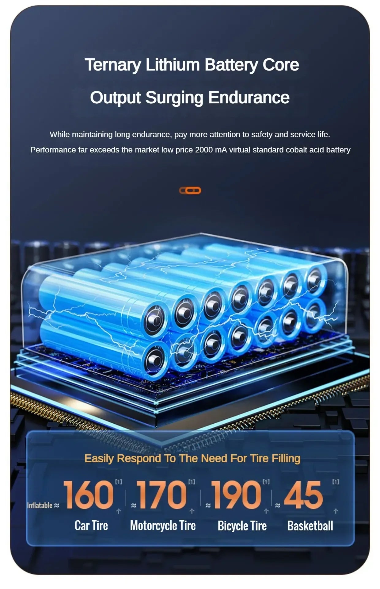Function: inflatable / pressure measurement / lighting / automatic charging and stopping / five inflatable modes