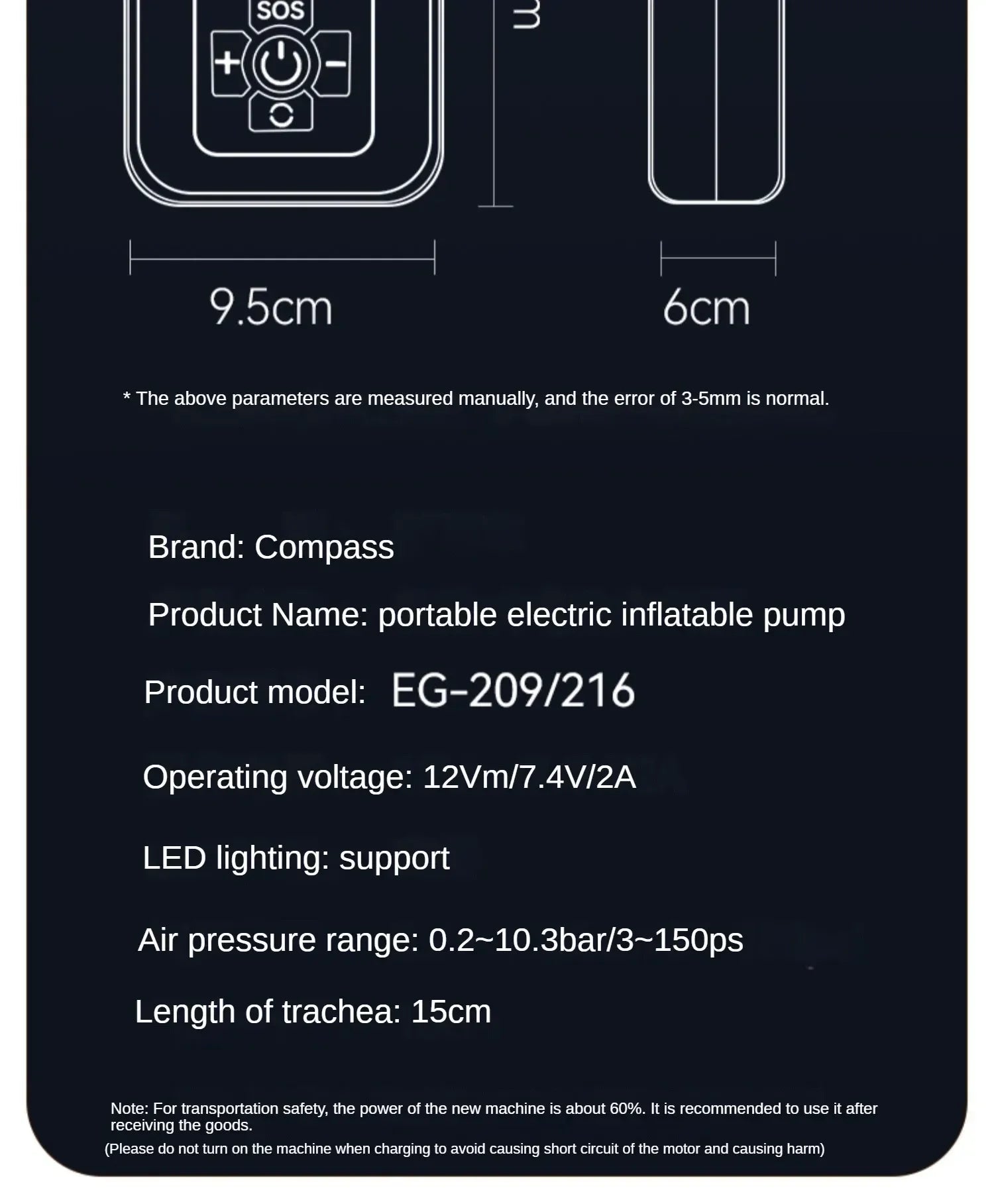 EAFC 150PSI Car Air Compressor Electric Tire Inflator Pump for Motorcycle Bicycle Boat Tyre Balls Multifunction Tire Inflator