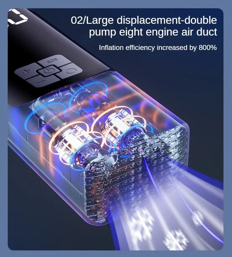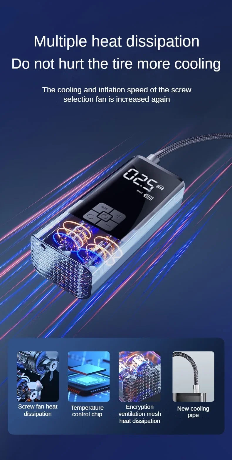 • Portable and Compact :The Mini Air Compressor is small and lightweight, making it easy to carry around and use on-the-go.