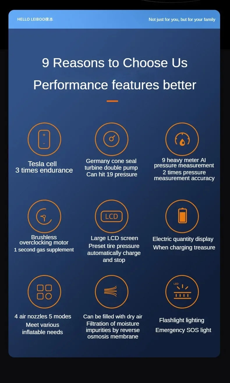 • Electric: The mini air compressor is powered by 12V DC motor for wired models and USB charging for wireless models, which is easy to use and does not require manual pumping.