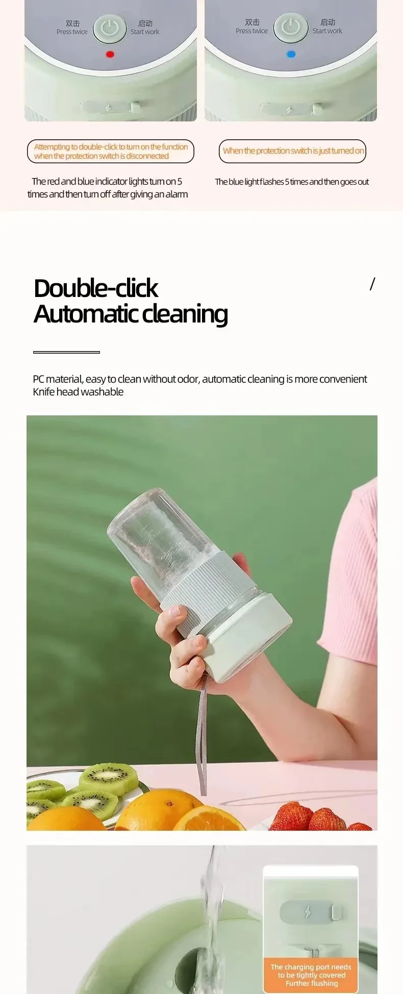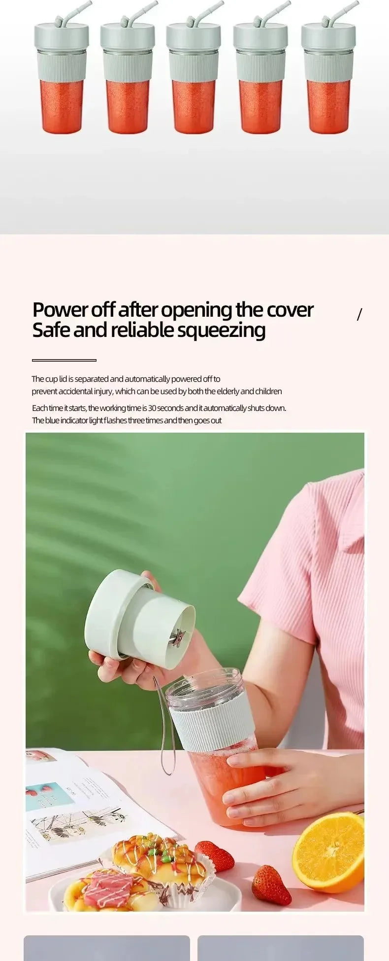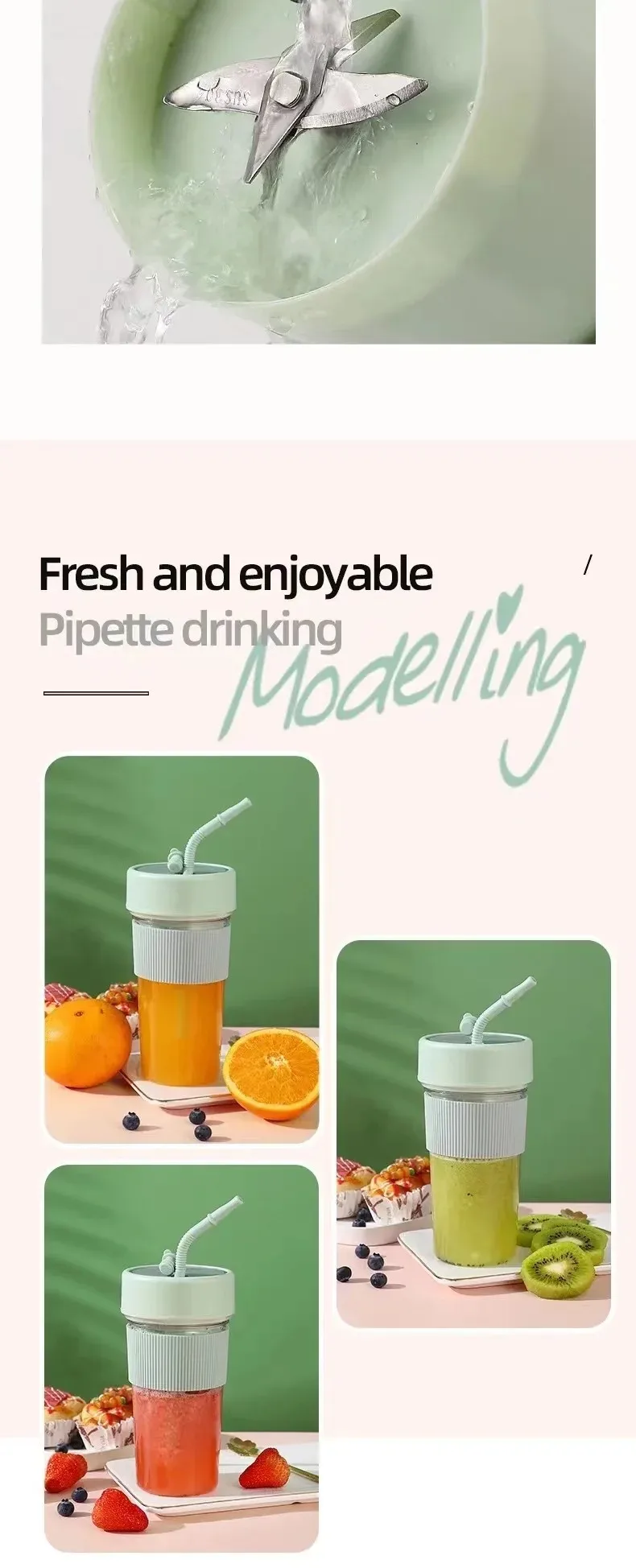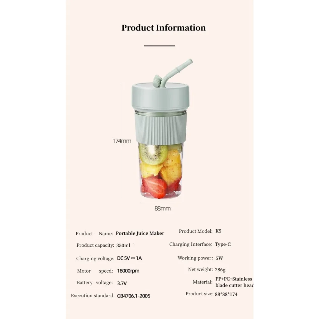 Electric Fruit Juicer Portable Wireless Blender Juice Mixer Mini Juice Cup With Straw Electric Juicer With 6-Blade USB Charging