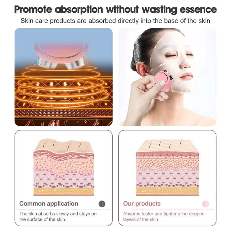 1. Using EMS micro-current and sound wave vibration, stimulate facial acupuncture points to dredge facial meridians.2. The specially designed dual rollers fit perfectly against the skin.