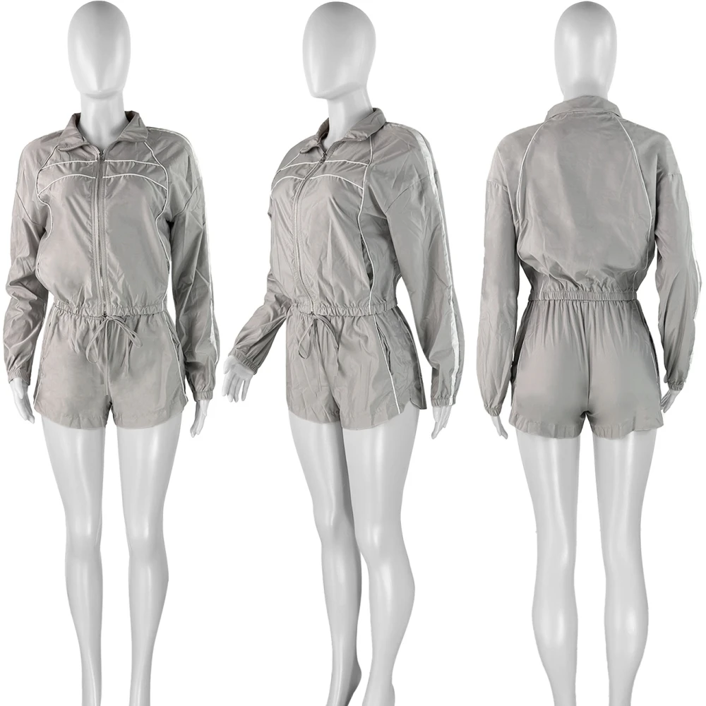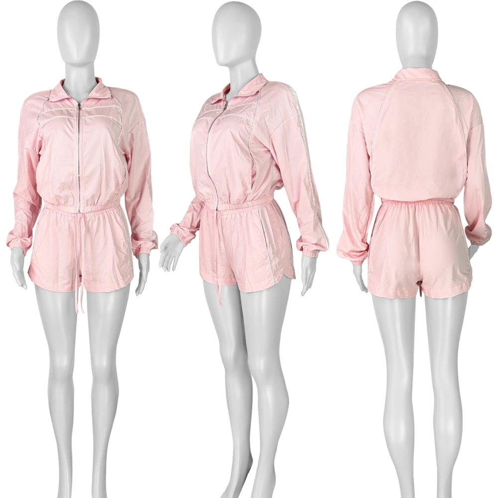 FAGADOER Casual Color Block 2 Pieces Set for Woman Long Sleeve Zipper Crop Jacke and Drawstring Shorts Female Jogger Clothing