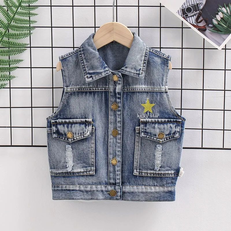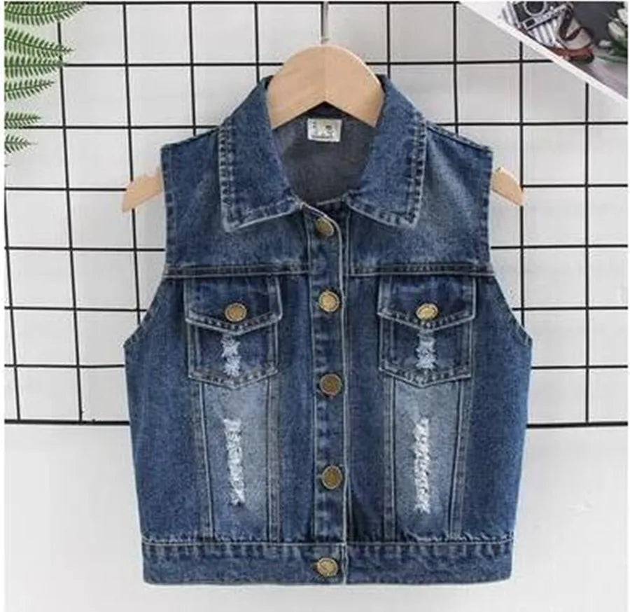 Fashion Casual Kids Boys Denim Vest Waistcoats Baby Girls Classic Denim Coats Spring Autumn Short Jackets Clothin Fit 2-7 Yearsg