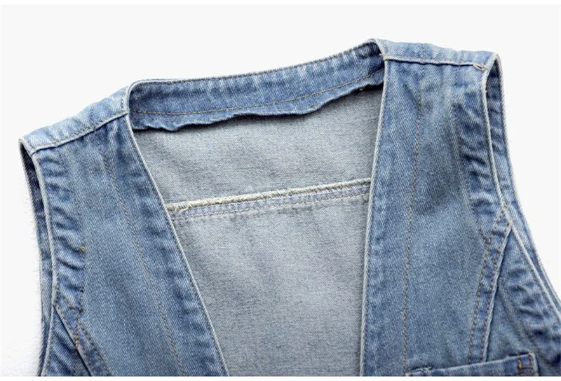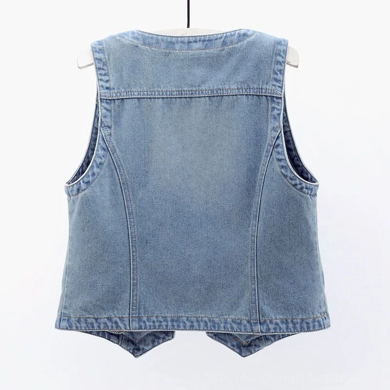Fashion Denim Vest Female Streetwear V Neck Women Vest Summer Large Size Waistcoat Jeans Tops Sleevless Jacket Chaleco Mujer 6XL