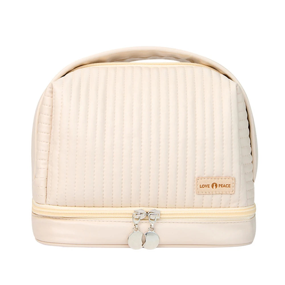 PU Makeup Brushes Pouch Dry Wet Separation Double-layer Toast Cake Shape Storage Bag Waterproof Large-capacity for Business Trip