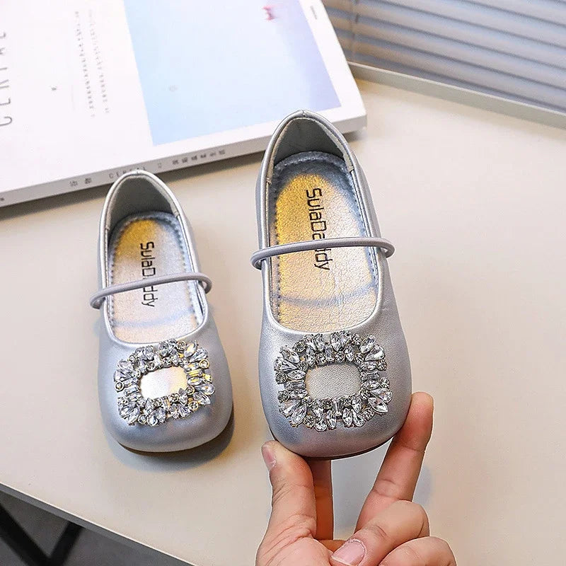 Girls Princess Leather Shoes Luxury Rhinestone Kids Ballet Shoes Fashion Shallow Non-slip Children's Flats for Party Wedding