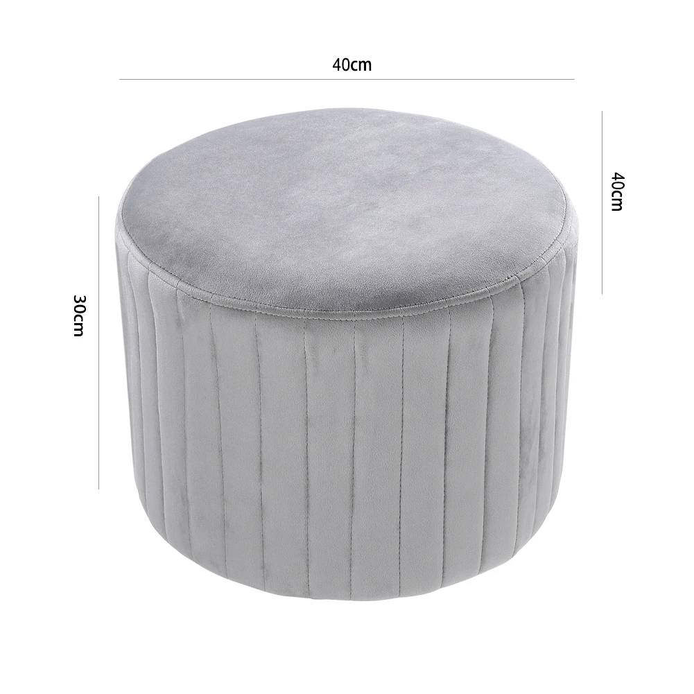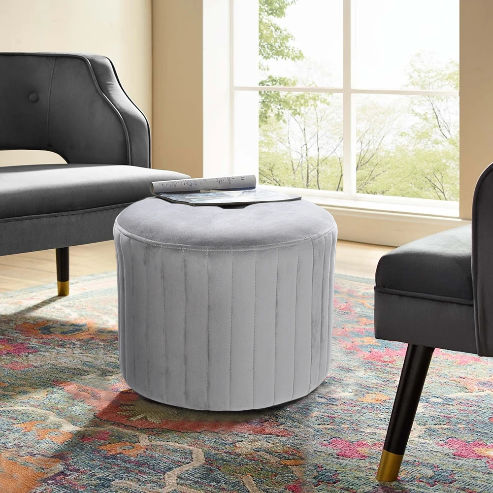 Grey Comfortable Round Velvet Stool Chair Dressing Table Ottoman for Living Room Bedroom