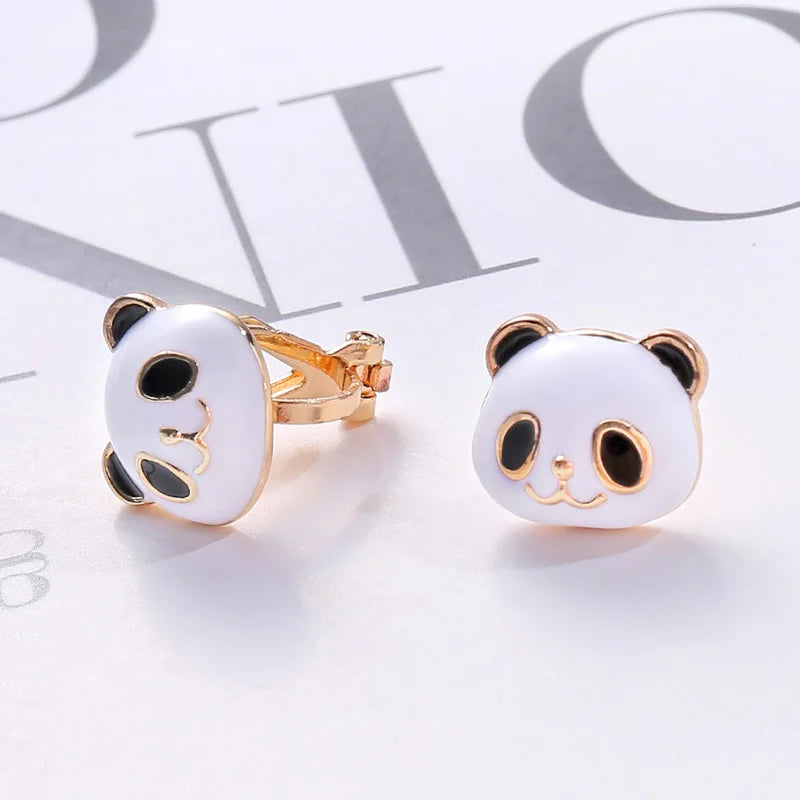 JIOFREE Korea Style Cartoon panda clip on earrings non pierced earrings ear clips Ear Cuff For Women party