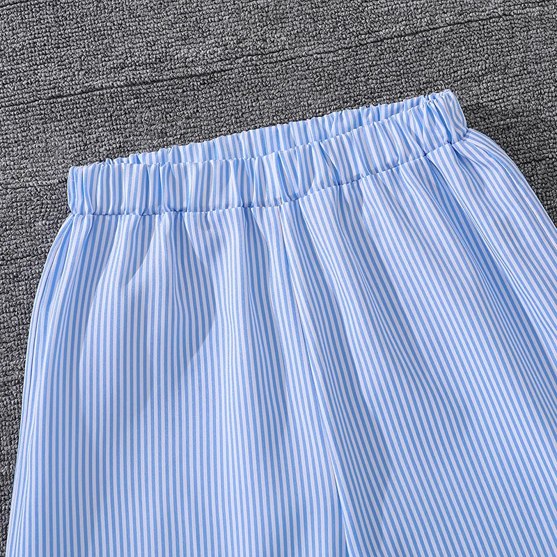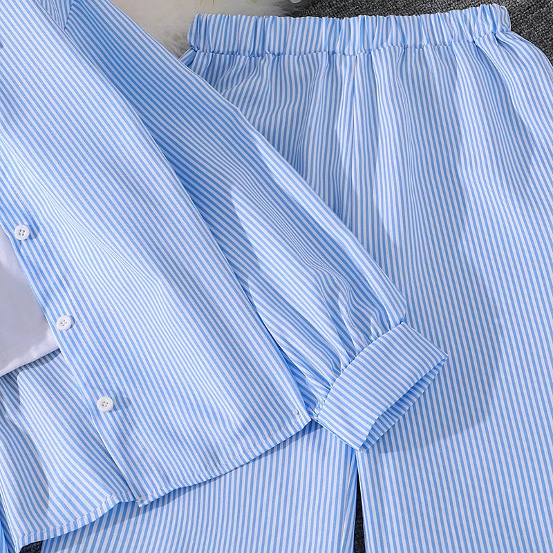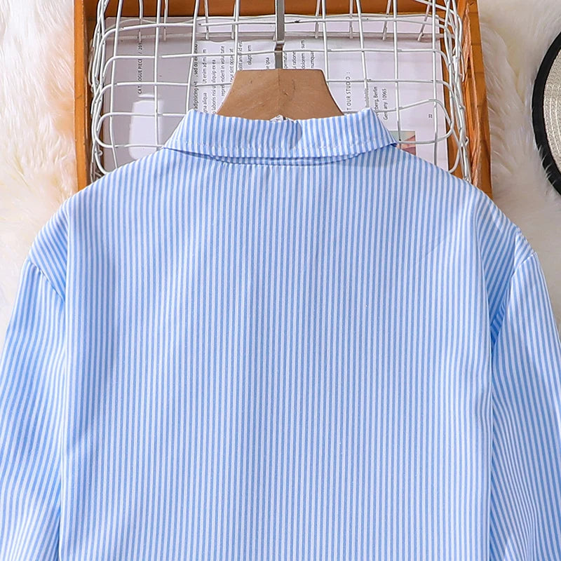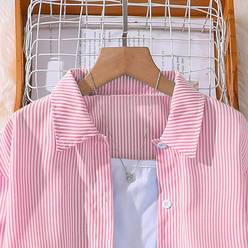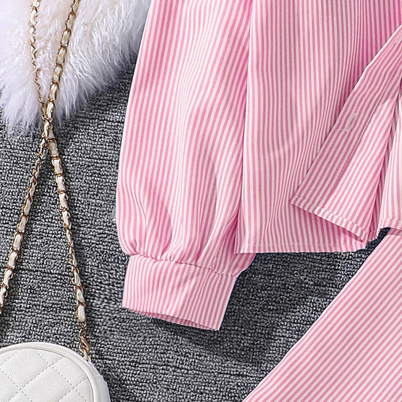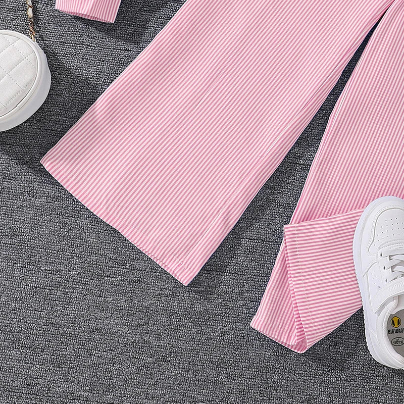 Kids Costume Suit For 4-12 Years Girls Pink Striped Long Sleeve Lapel Cardigan Shirt & Pants Daily Causal Style Comfortable Suit