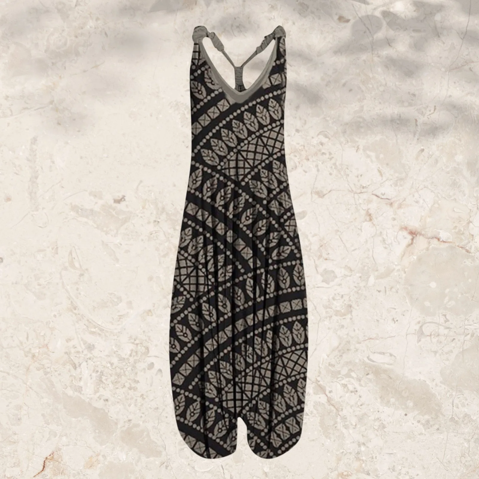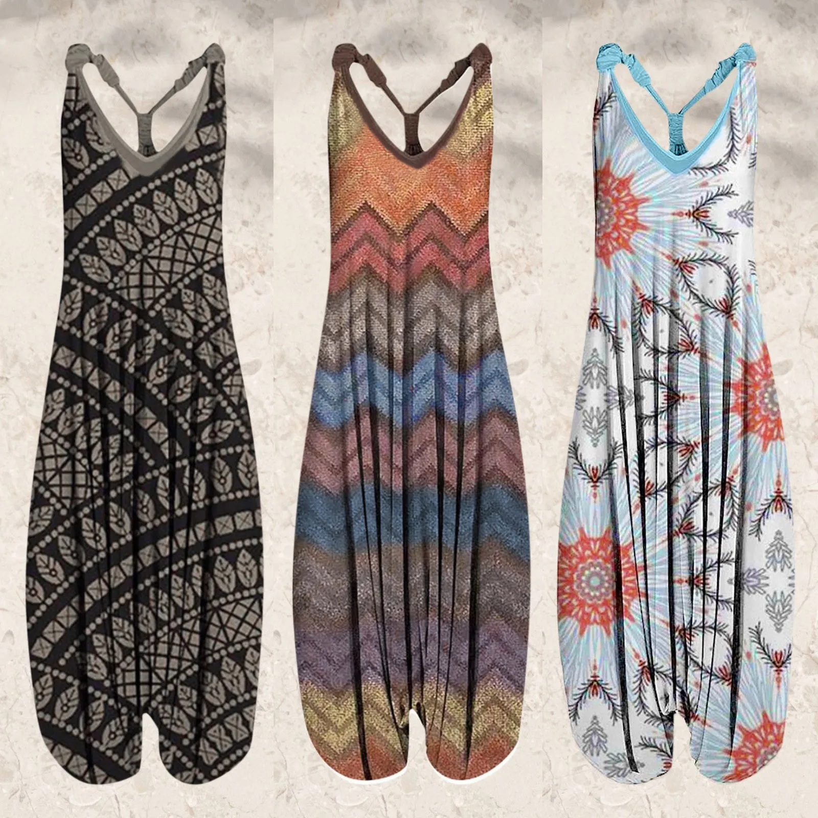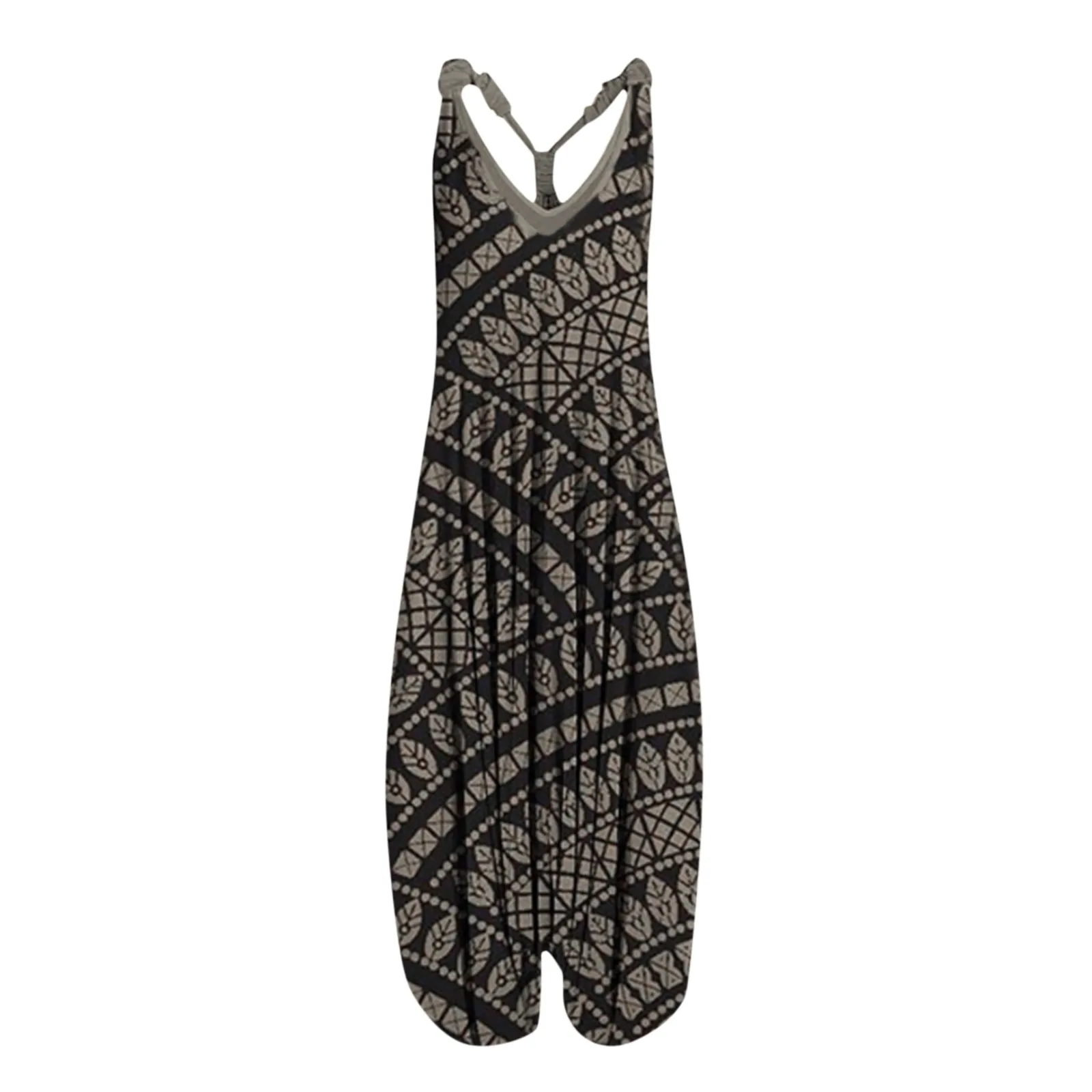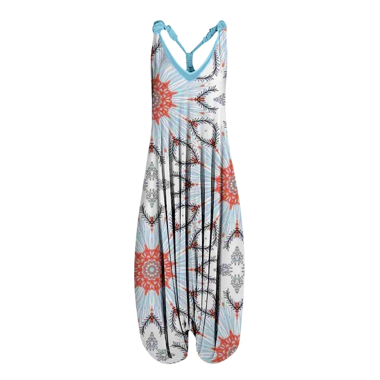 Large Size Ethnic Style Women's Jumpsuits Spring Summer Printed Sleeveless Overalls Backless Cross Straps Beach Jumpsuit S-5XL
