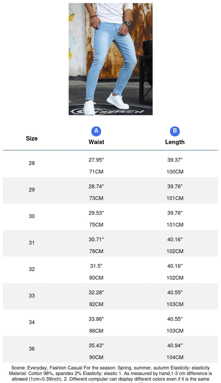 Man Pants Retro Washing Zipper Stretch Jeans Casual Slim Fit Trousers Male Plus Size Pencil Pants Denim Skinny Jeans for Men