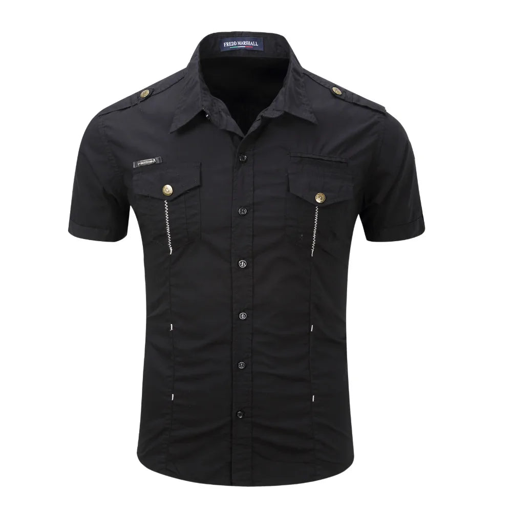 Men's Shirt 2024 New Men Cargo Shirt Fashion Casual Shirt Summer Style 100% Cotton Solid Mens Casual Shirt Plus Size S-3XL 55888