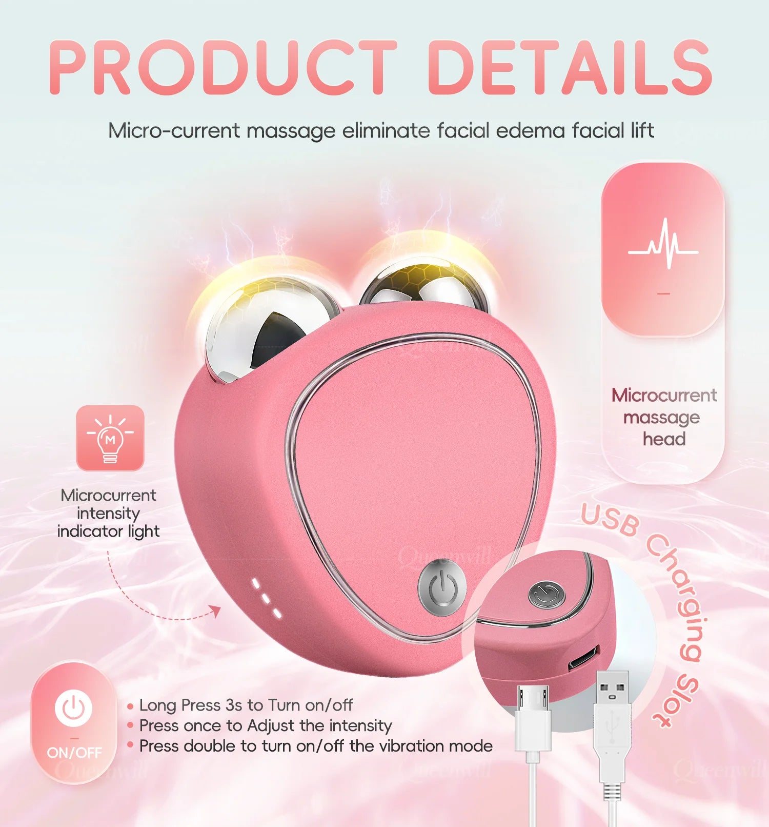 Microcurrent EMS Face Lifting Roller Facial Massager Skin Tightening Rejuvenation Anti-Wrinkle Rechargeable Device Beauty Tool
